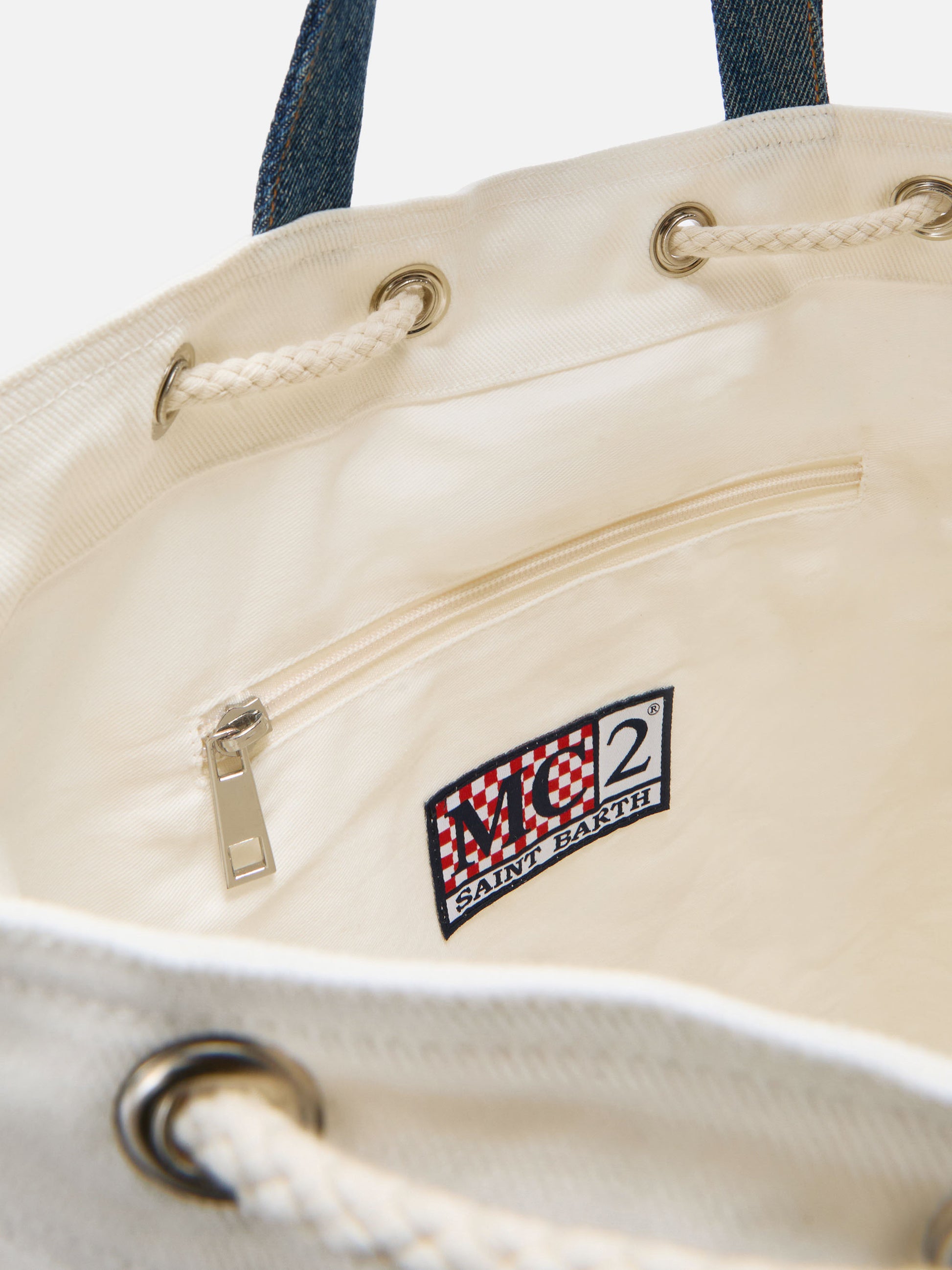 Beach Backpack in fabric white and light blue with embroidered logo