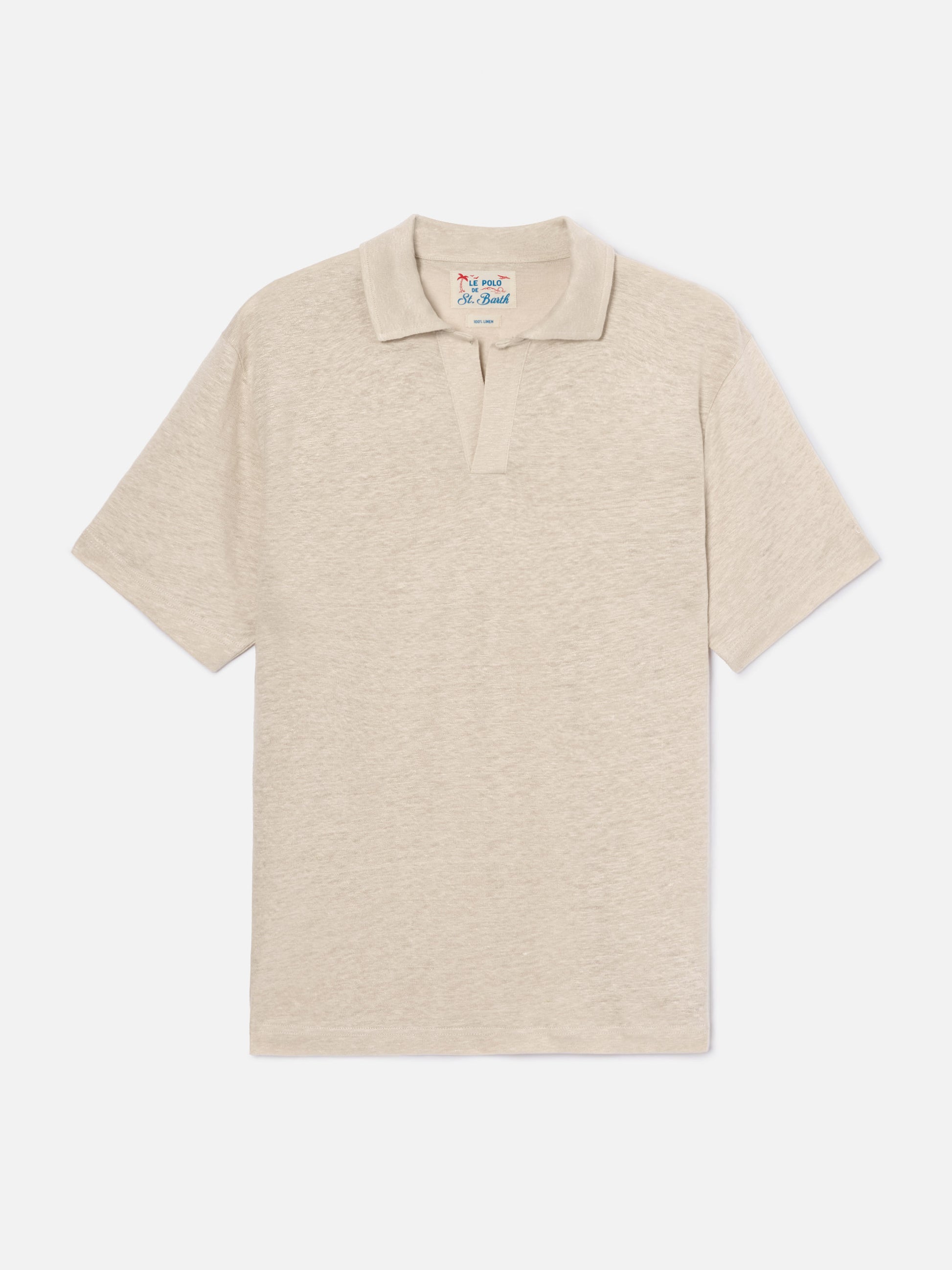 Beige Fraser polo in pure linen solid color