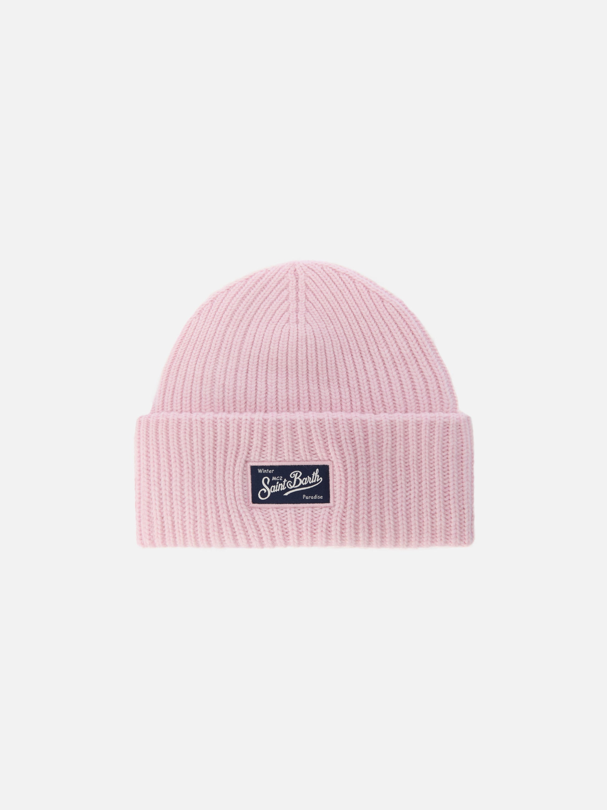 Berry Jr ribbed cashmere-blend beanie in pink with St. Barth embroidery