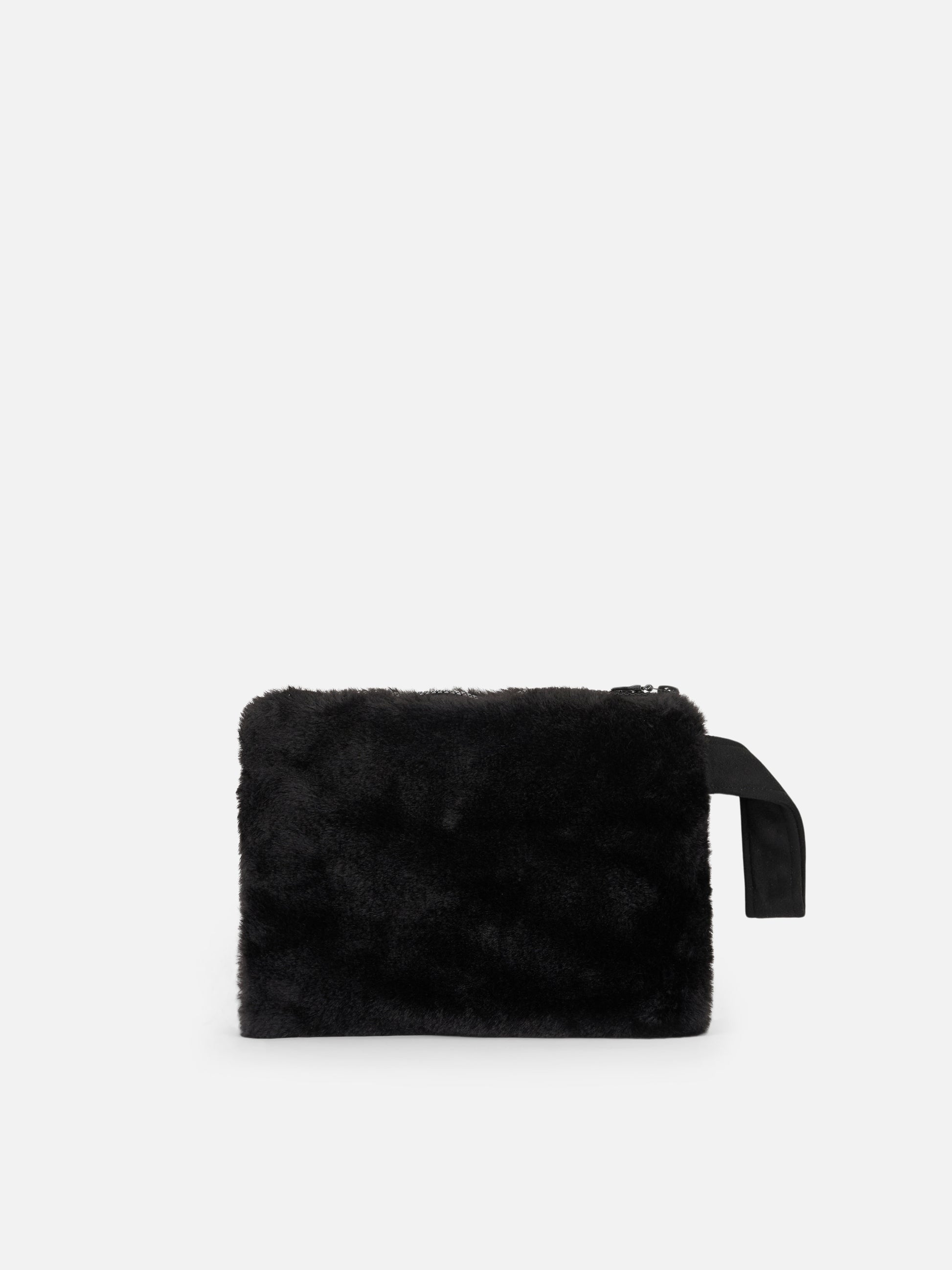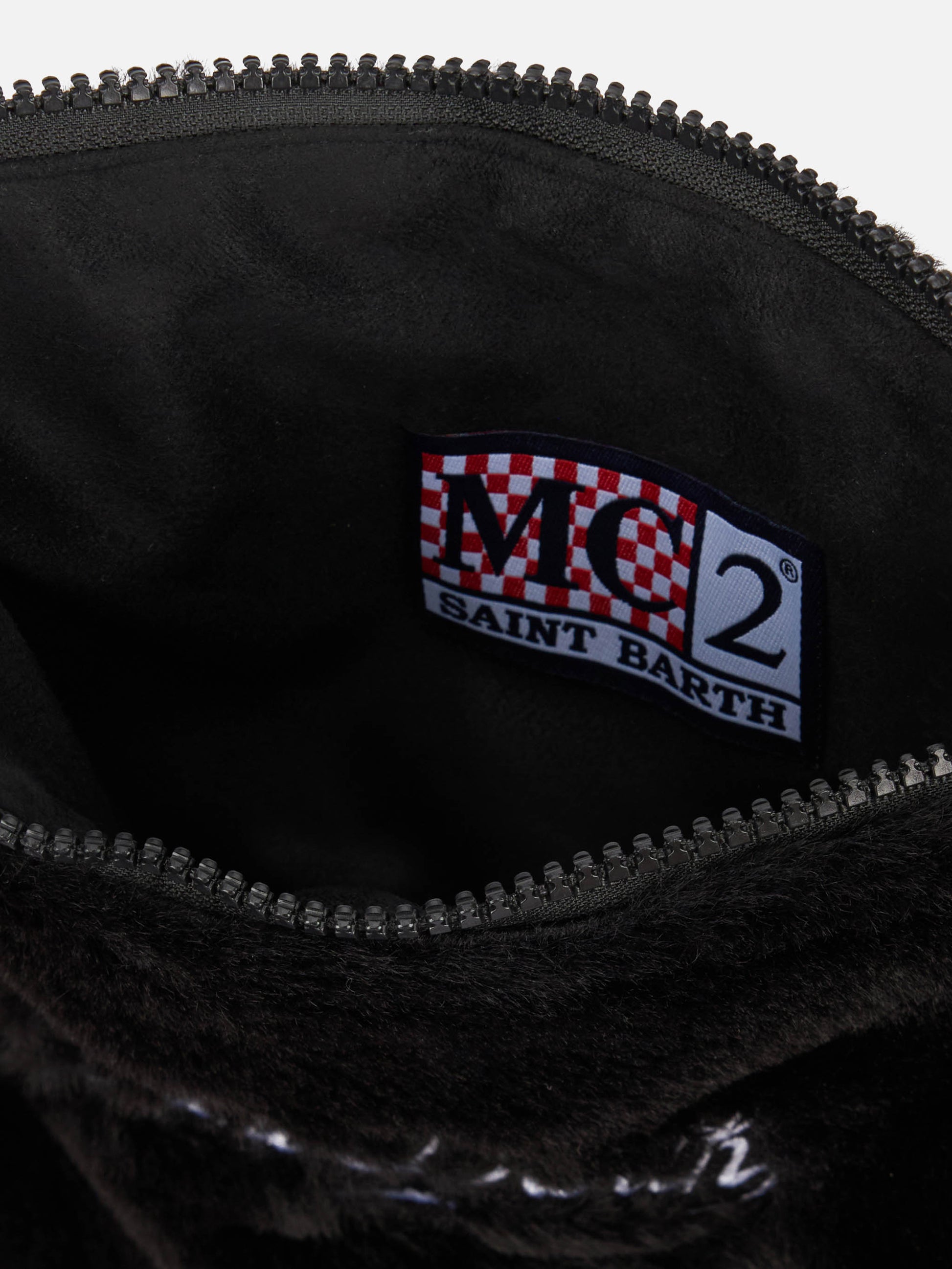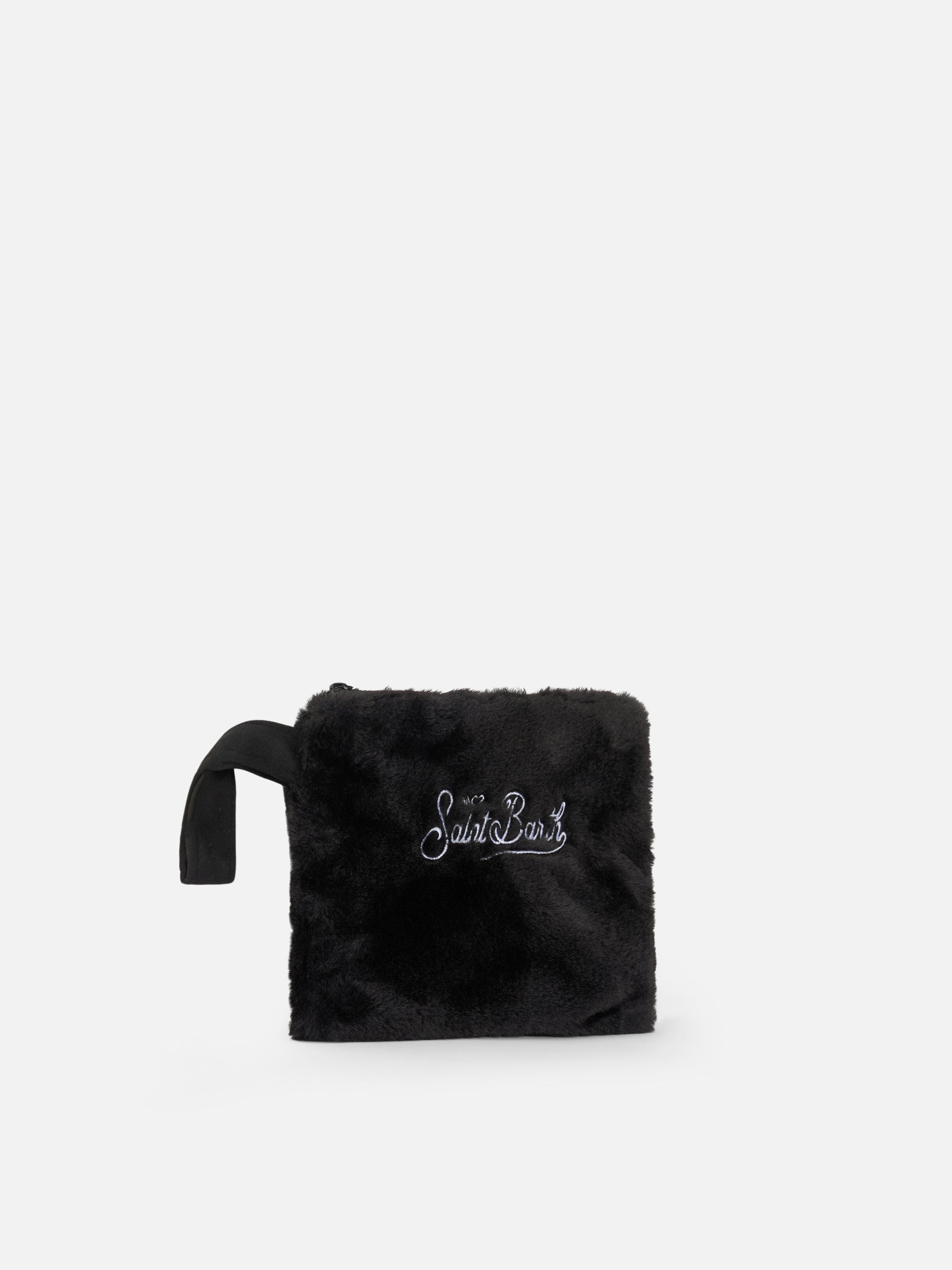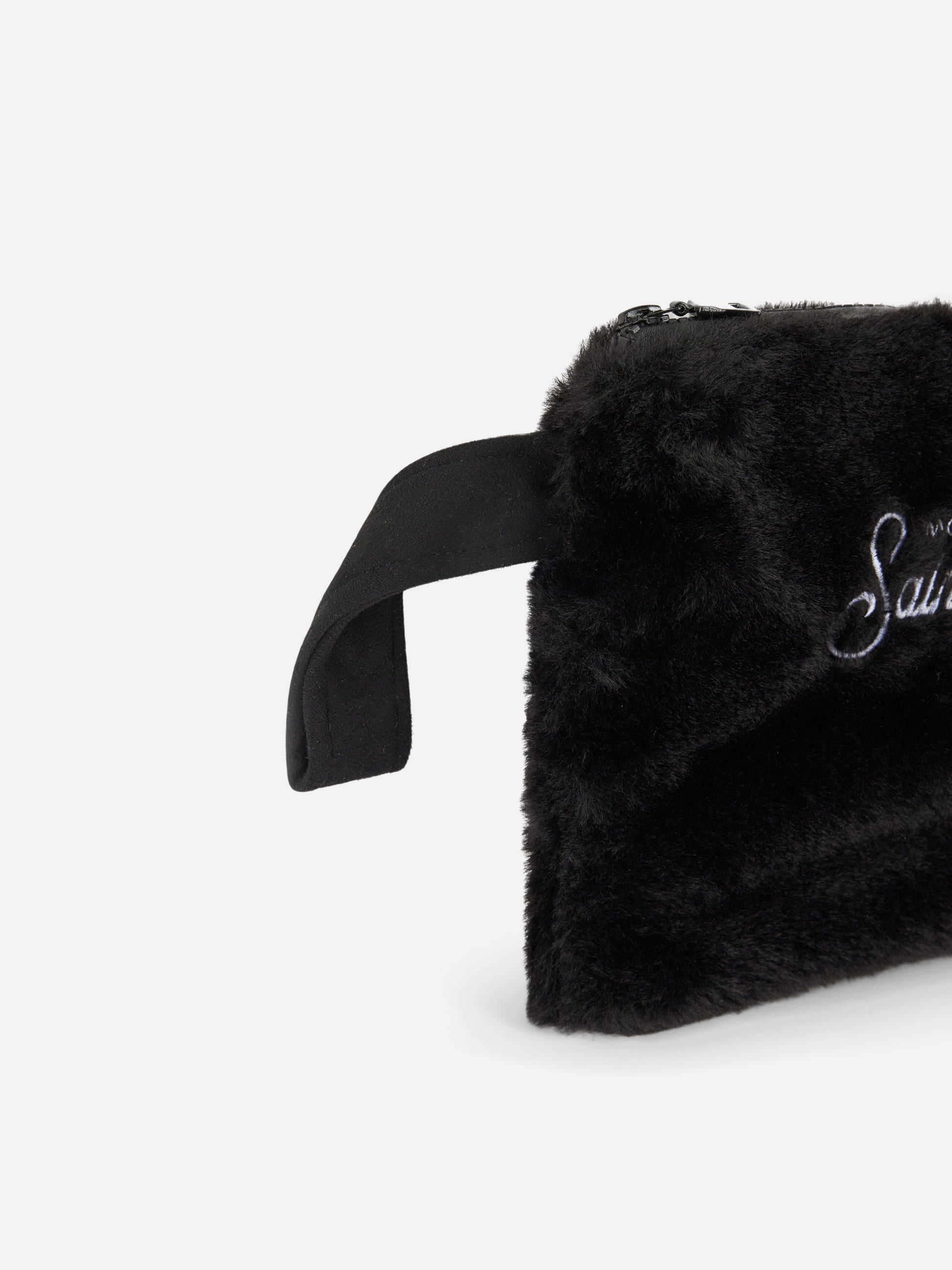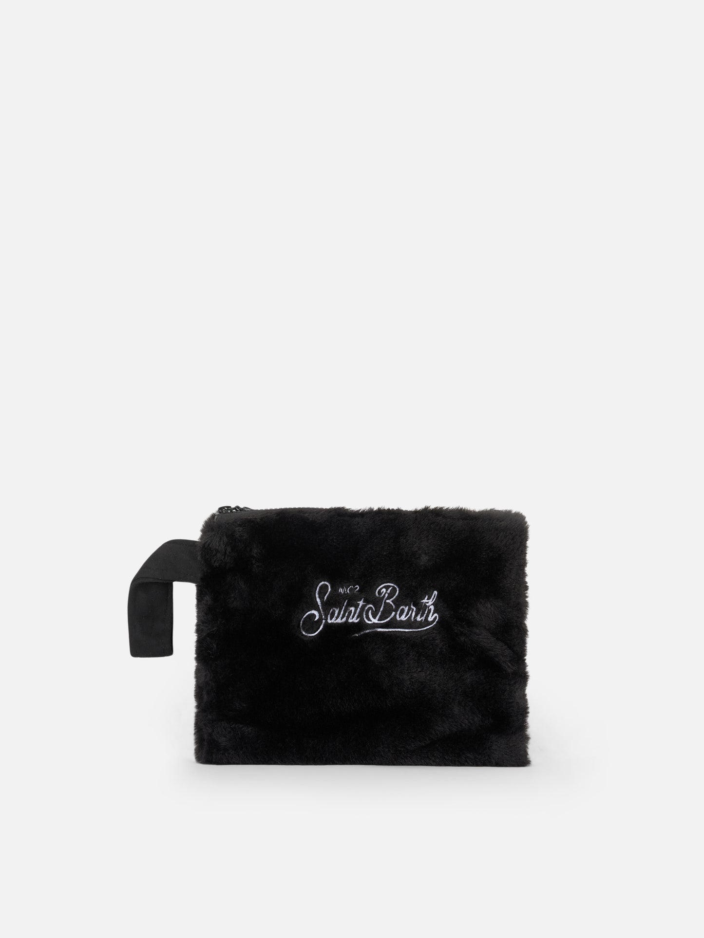Schwarze Pochette Pareasy aus Pelz mit Saint Barth-Stickerei