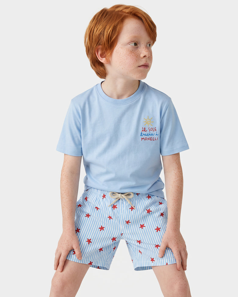 Badeshorts für Jungen aus leichtem Stoff Jean Lighting 70 mit Hai-Aufdruck