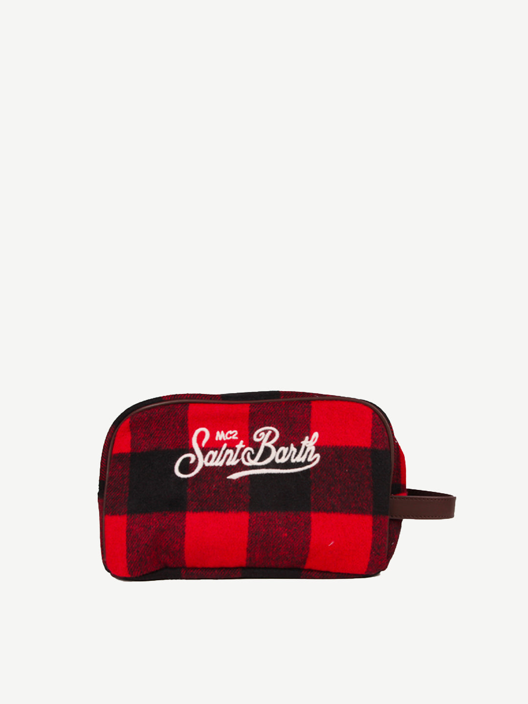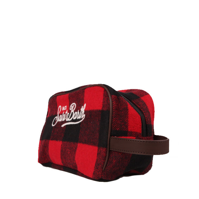 Kosmetikkoffer aus rot-schwarz kariertem Stoff