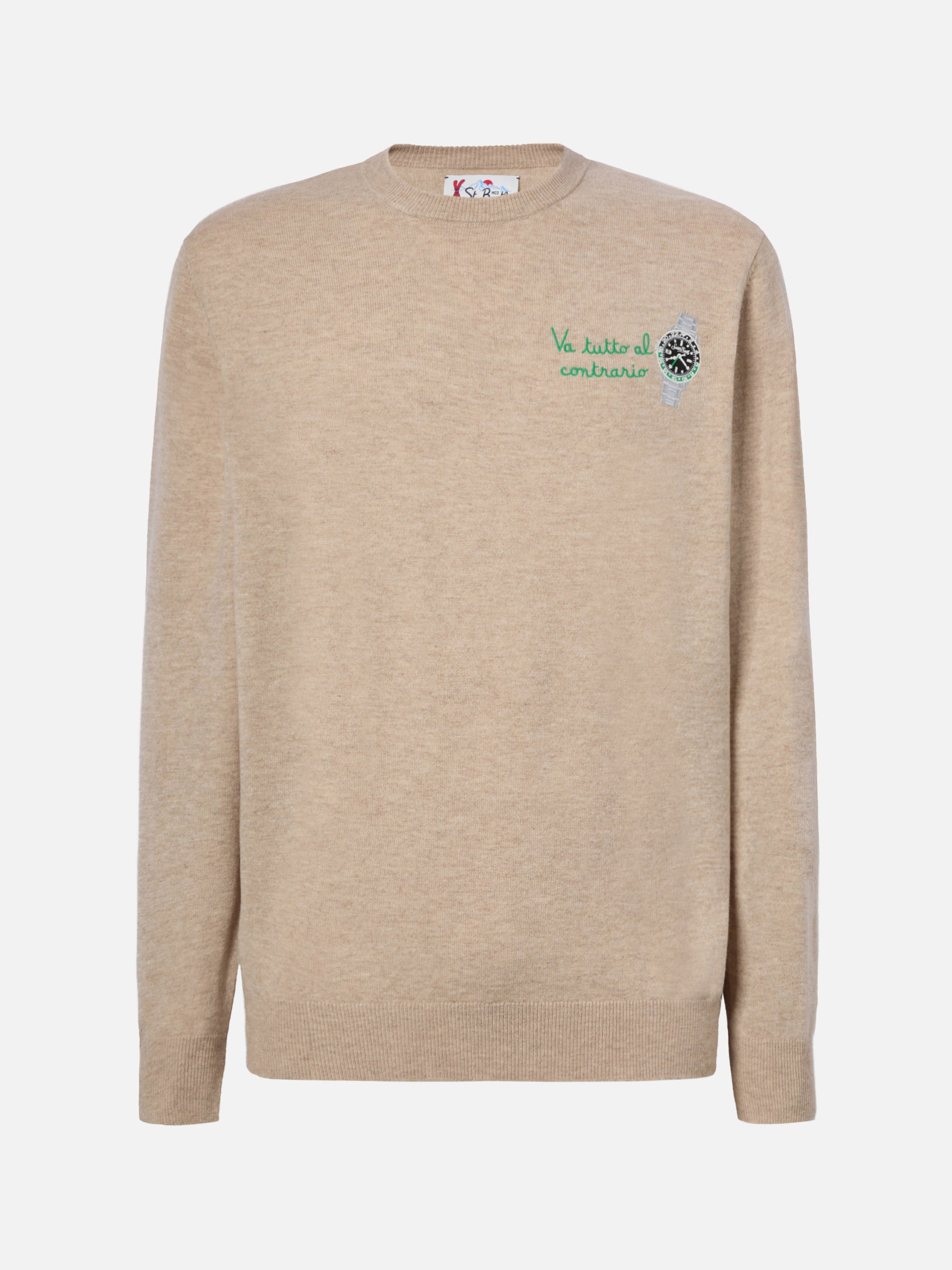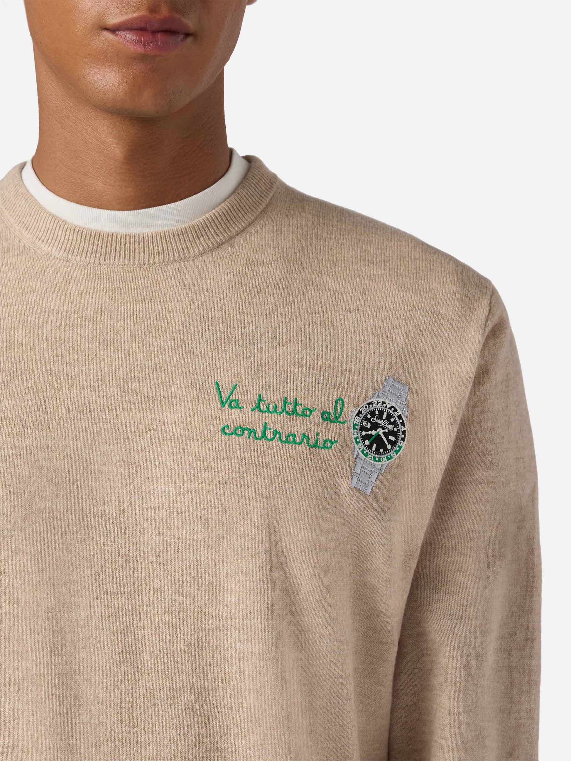 Rundhalspullover Heron Light mit Va tutto al contrario-Stickerei