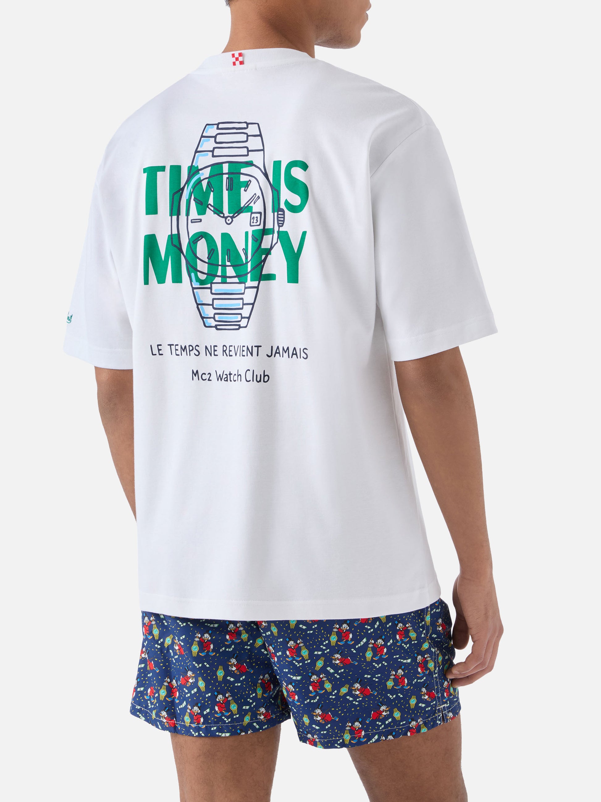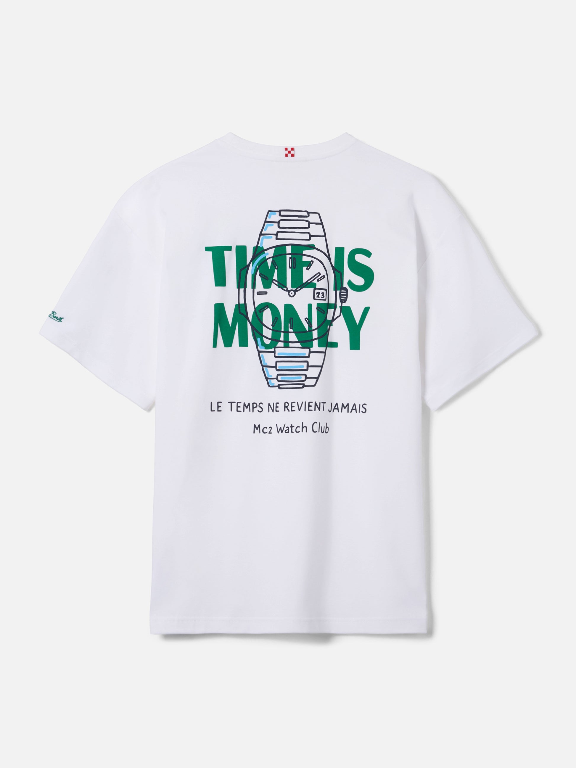 https://it.mc2saintbarth.com/de/products/delmar-t-shirt-with-time-is-money-print-and-maxi-graphic-on-the-back10775856742746Delmar t-shirt with Time Is Money print and maxi graphic on the back99,00https:files/UID_DLR000101605L-MAN-T-SHIRT-WHITE-MC2-MC2_5.jpghttps:files/UID_DLR000101605L-MAN-T-SHIRT-WHITE-MC2-MC2_5.jpgEURInStockT-SHIRT650948215130Alle Produkte – nur von Man649134276954AVADA - Bestseller647472087386Bedruckte T-Shirts288164774072T-Shirts für Herren621710016858Uhren aus Leidenschaft654690484570UpSelling_Man_T-ShirtsThe Delmar t-shirt is crafted from pure cotton, designed to provide comfort and a natural feel against the skin. The white solid-color design highlights the essential construction of the garment. The style features a Time Is Money in St. Barth print on the chest, while the back is enriched with a large graphic print featuring a watch and the Time Is Money lettering, completed by the phrases Le temps ne revient jamais and MC2 Watch Club. The garment is finished with a crew neck, short sleeves and a straight silhouette with a relaxed fit.