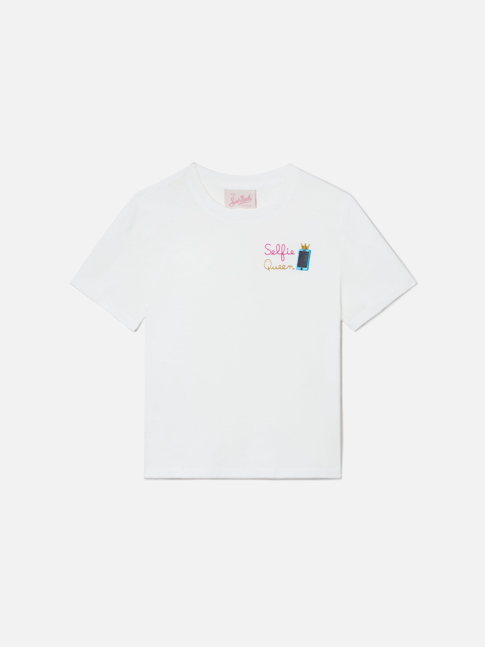 Elly T-shirt in white cotton with Selfie Queen embroidery