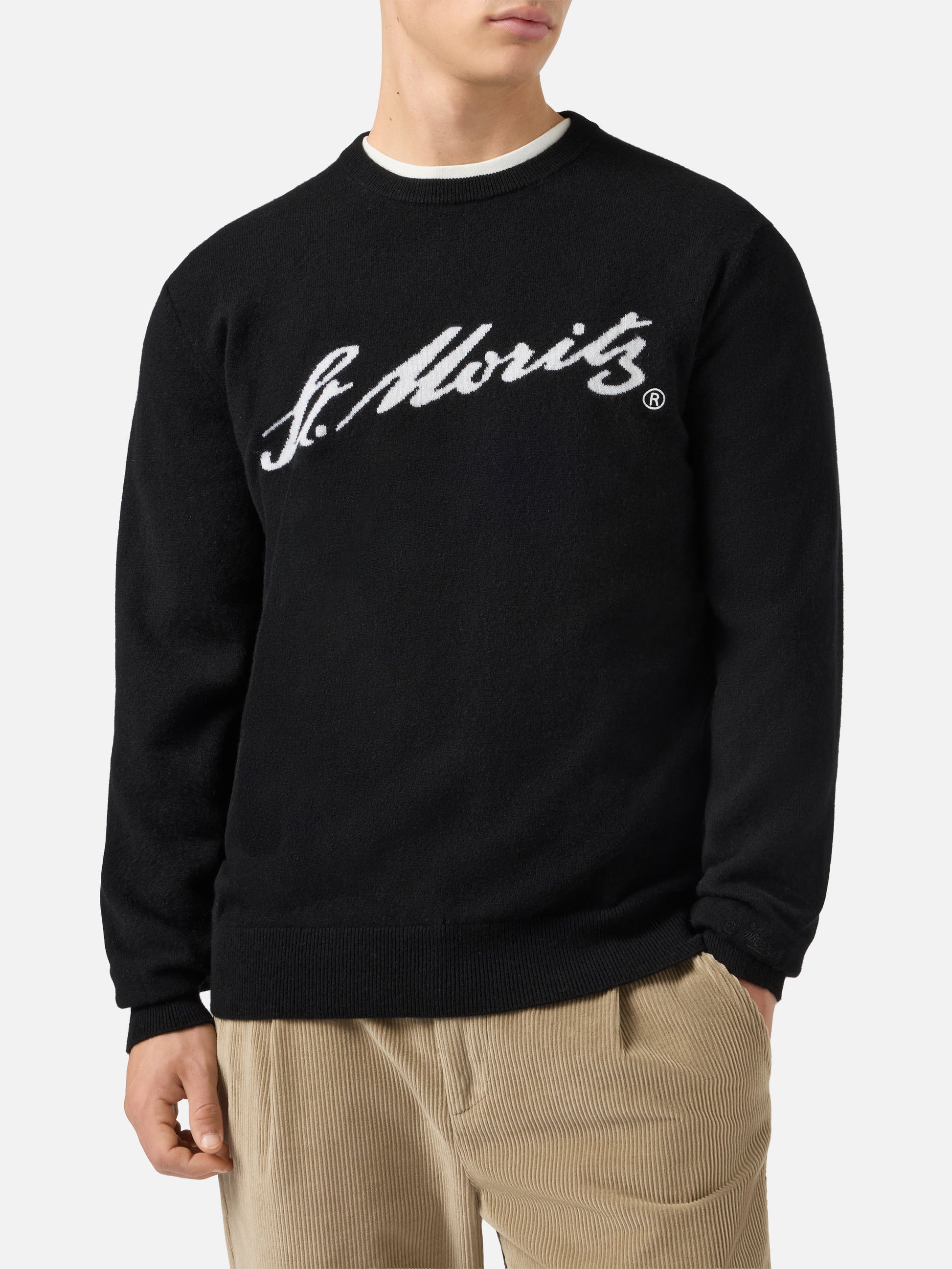 Heron Light Pullover aus 100 % schwarzem Kaschmir mit St. Moritz Intarsien | ST. MORITZ TOP OF THE WORLD