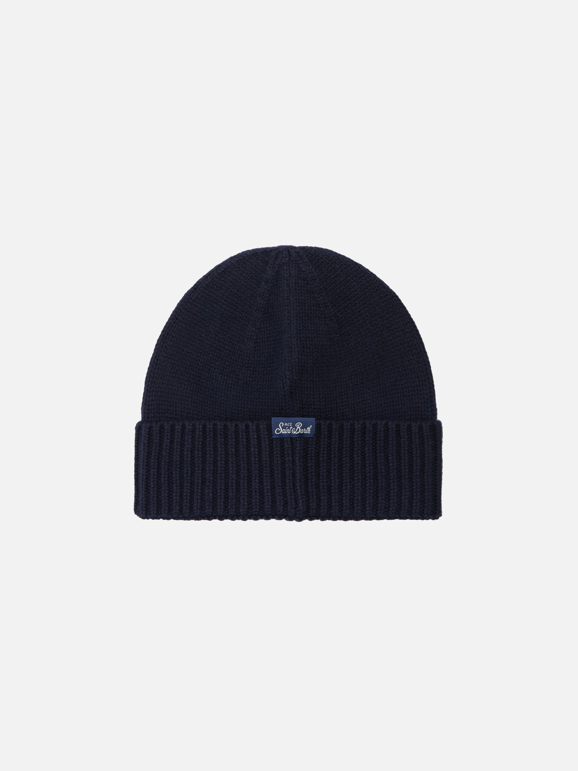 Blaue Holden-Mütze aus Kaschmir-Mischgewebe mit Trudi-Bärenstickerei | TRUDI SPECIAL EDITION