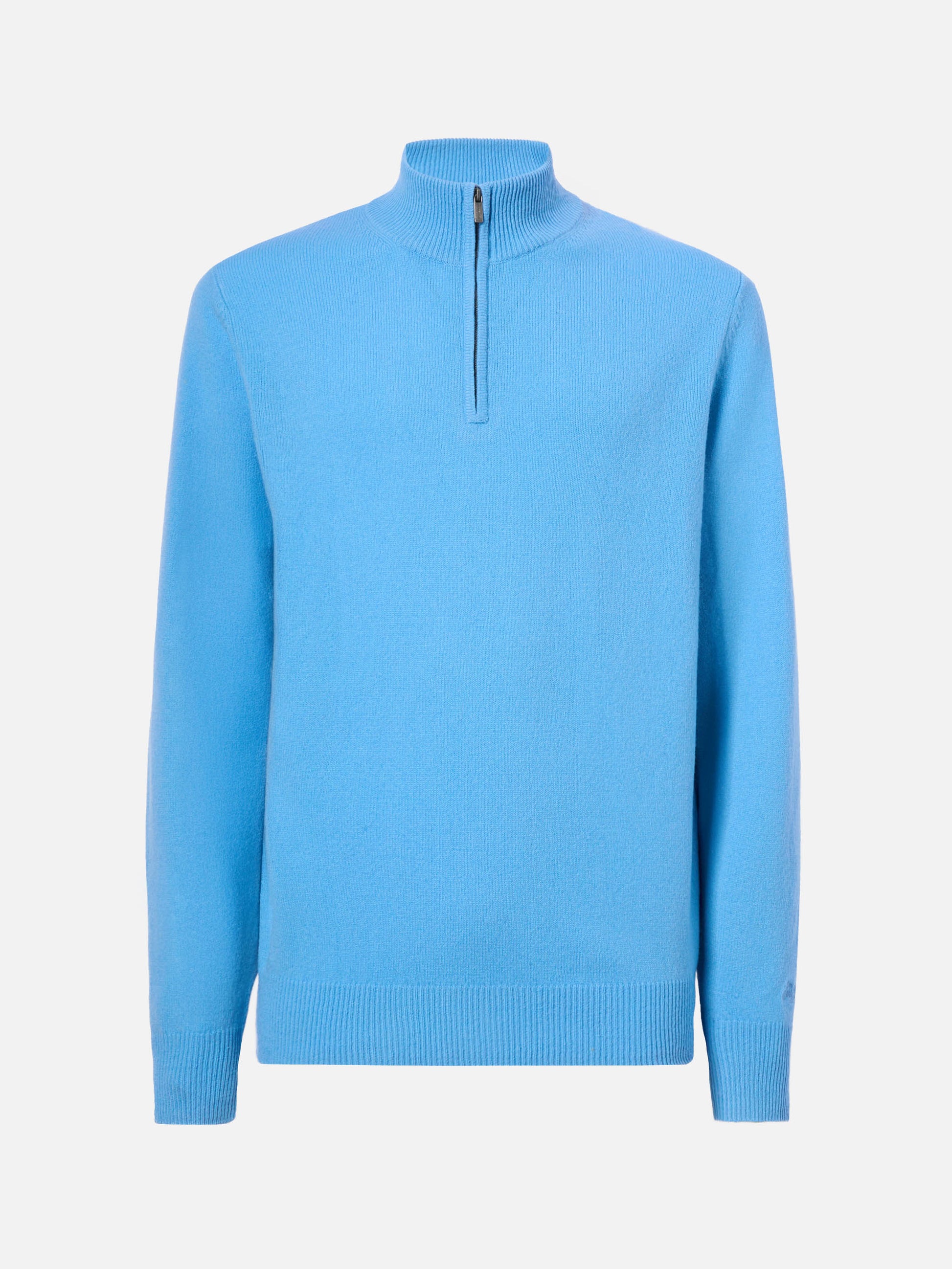 Jermyn in powder blue is the everyday half-zip—light yet warm, perfect under jackets and for commuting without sacrificing style.