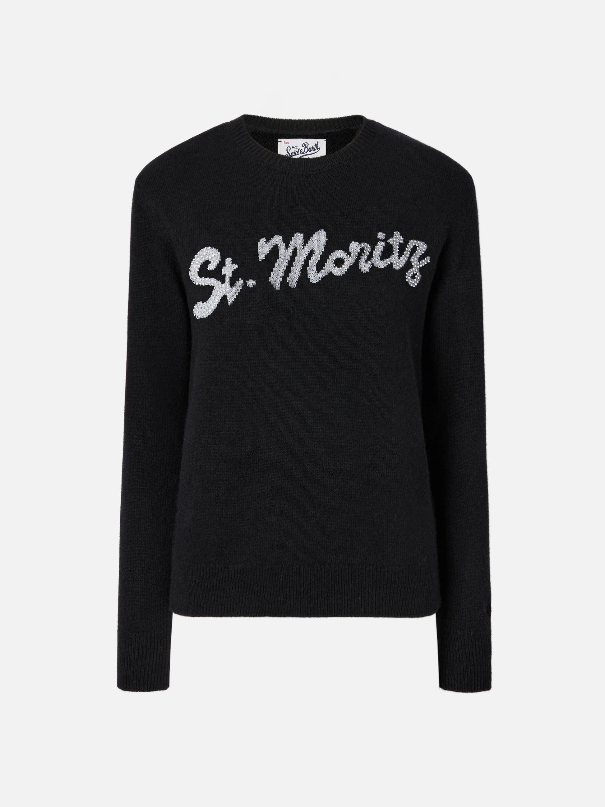Louise cashmere sweater in black with St. Moritz rhinestone appliqué