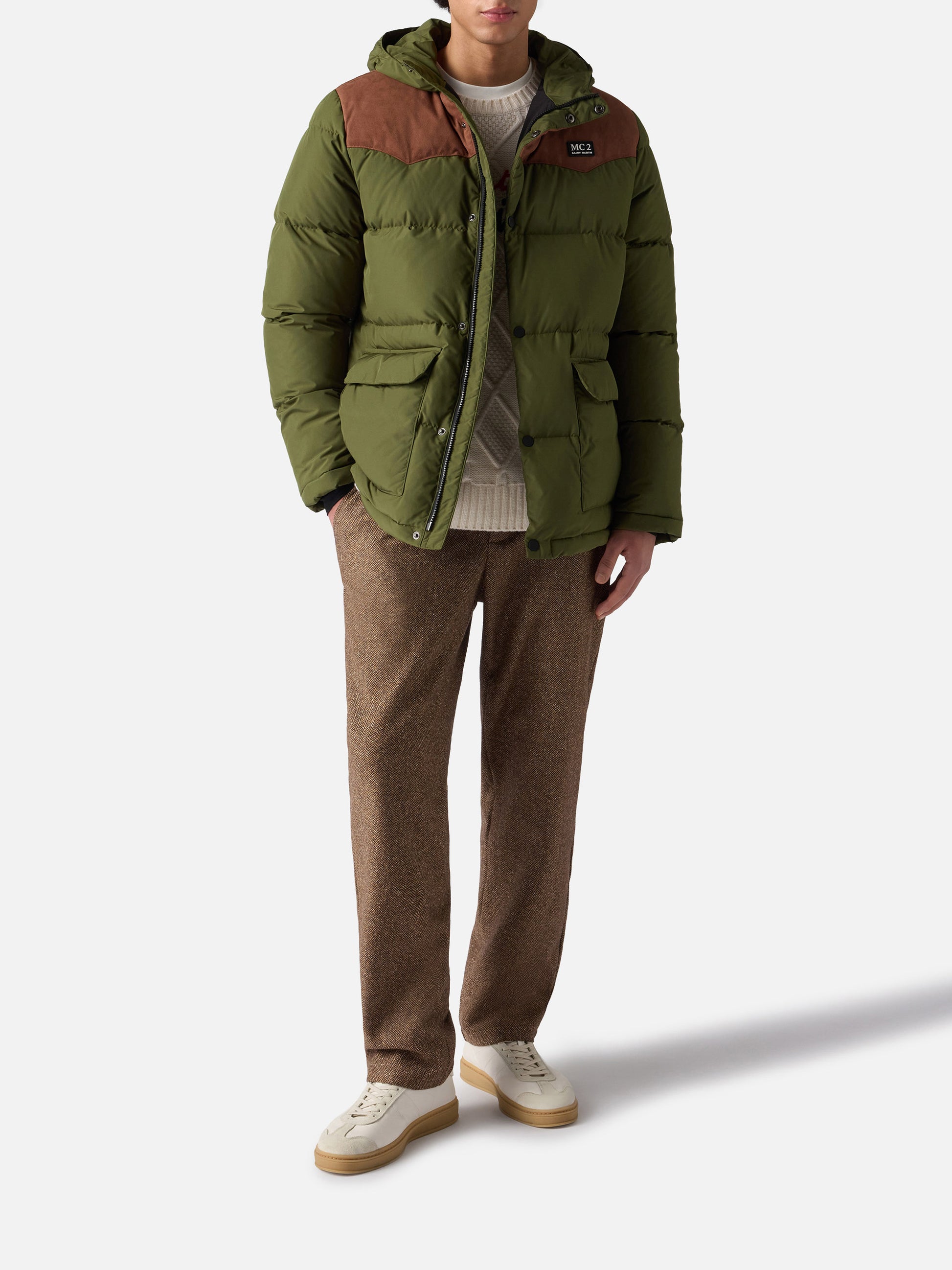 Militärgrüne Daunenjacke mit Kapuze für Herren Baxter