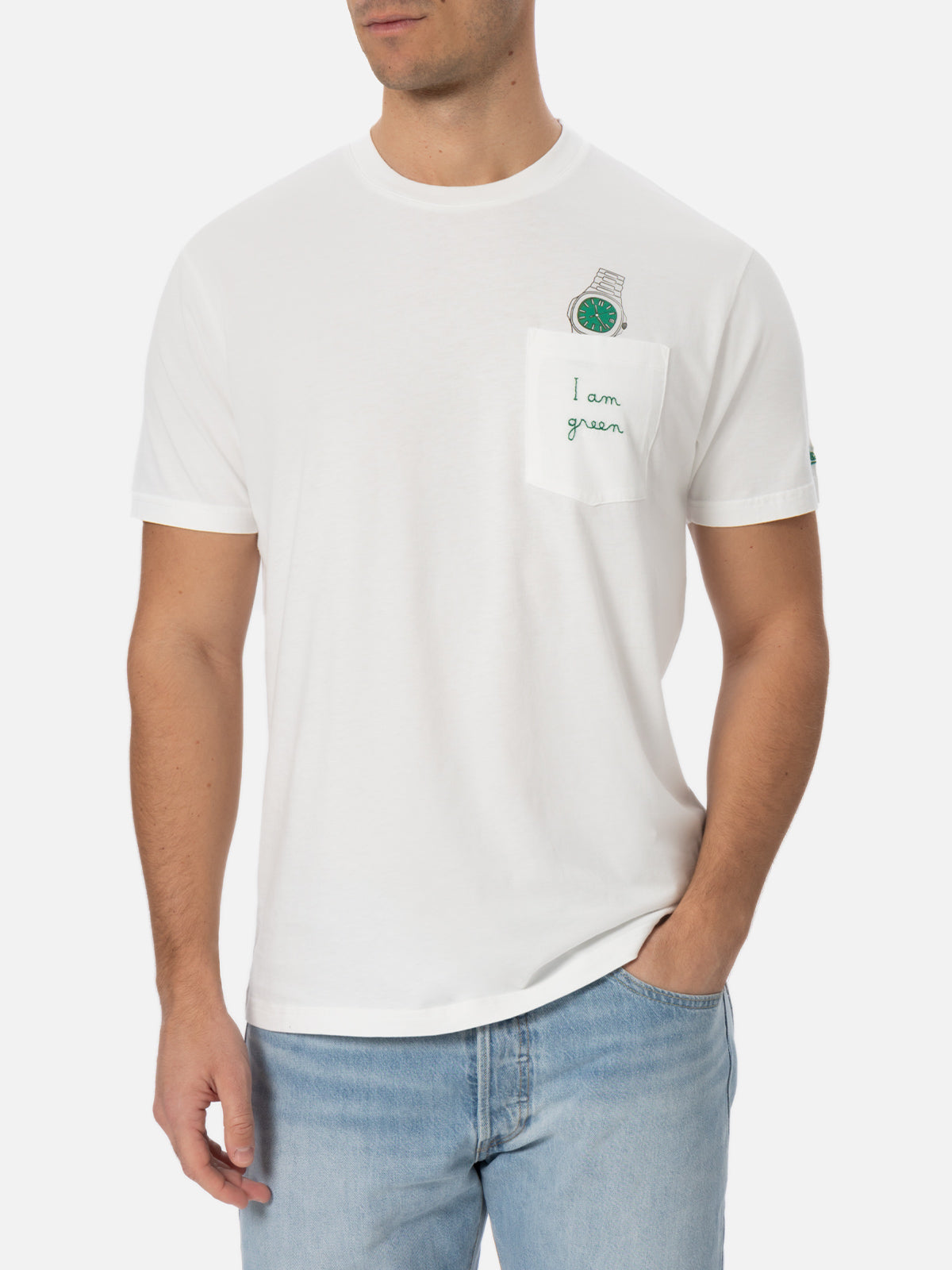 Weißes Baumwoll-T-Shirt für Herren Connor mit „I am green“-Stickerei
