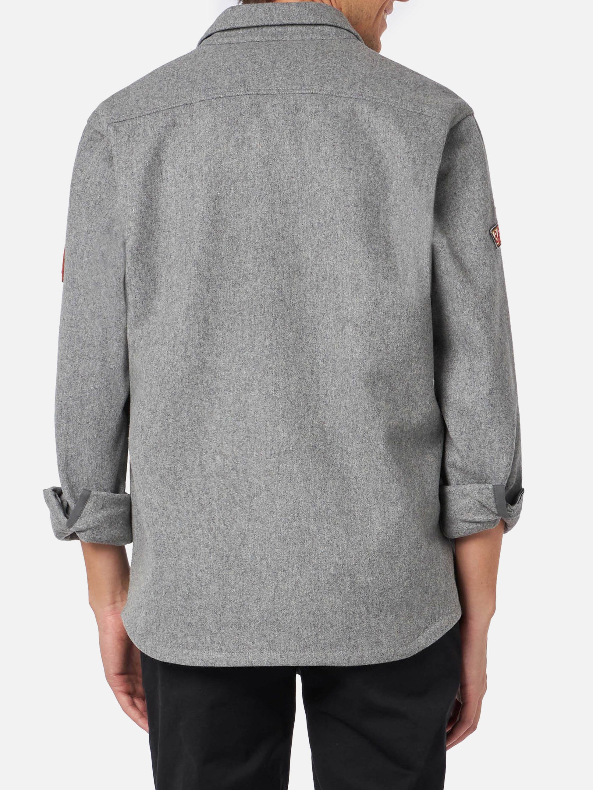 Wolliges graues Herren-Überhemd mit Taschen und Aufnähern