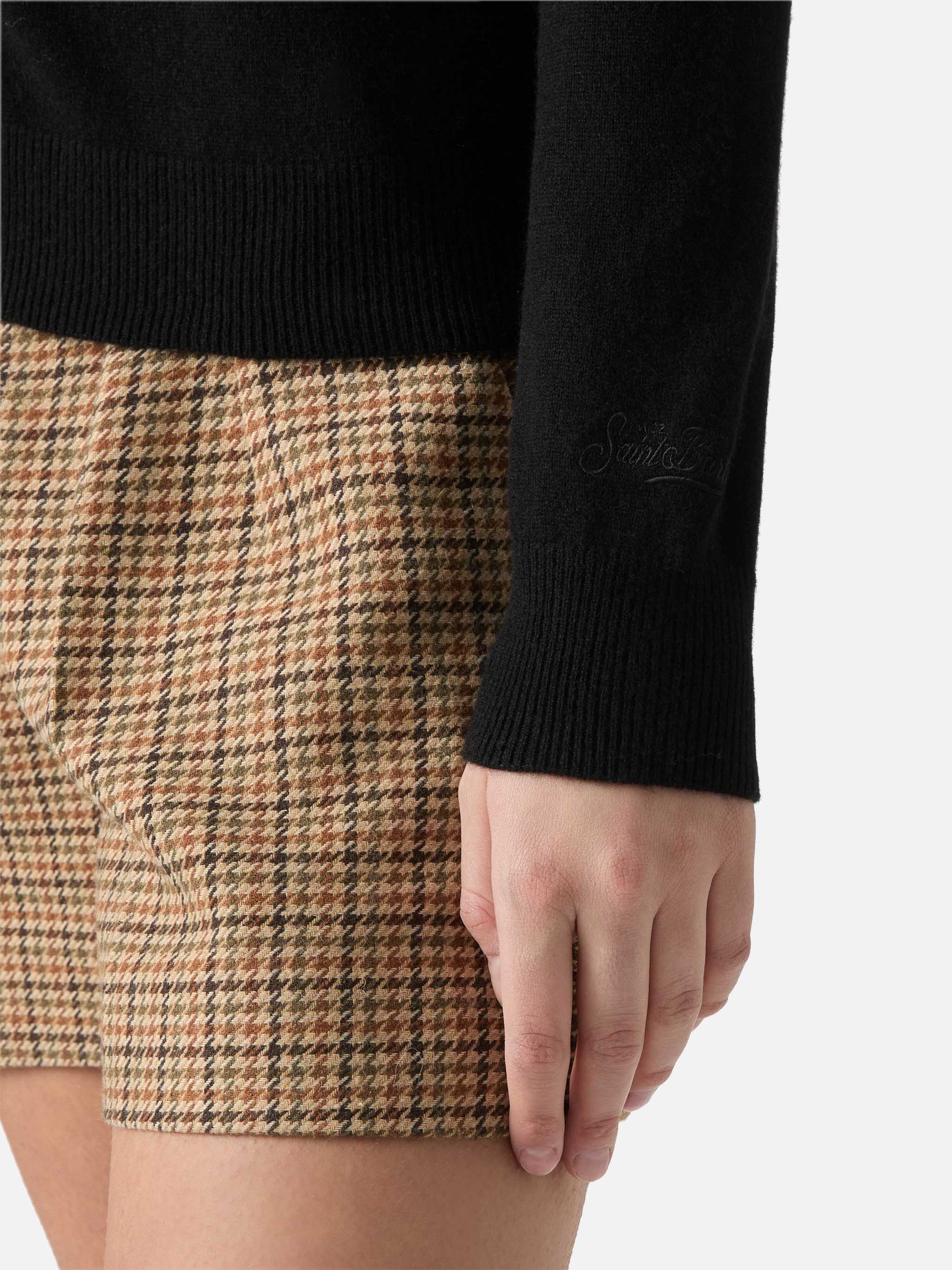 Düsterer Rollkragenpullover aus Kaschmir in Schwarz mit St. Barth-Stickerei