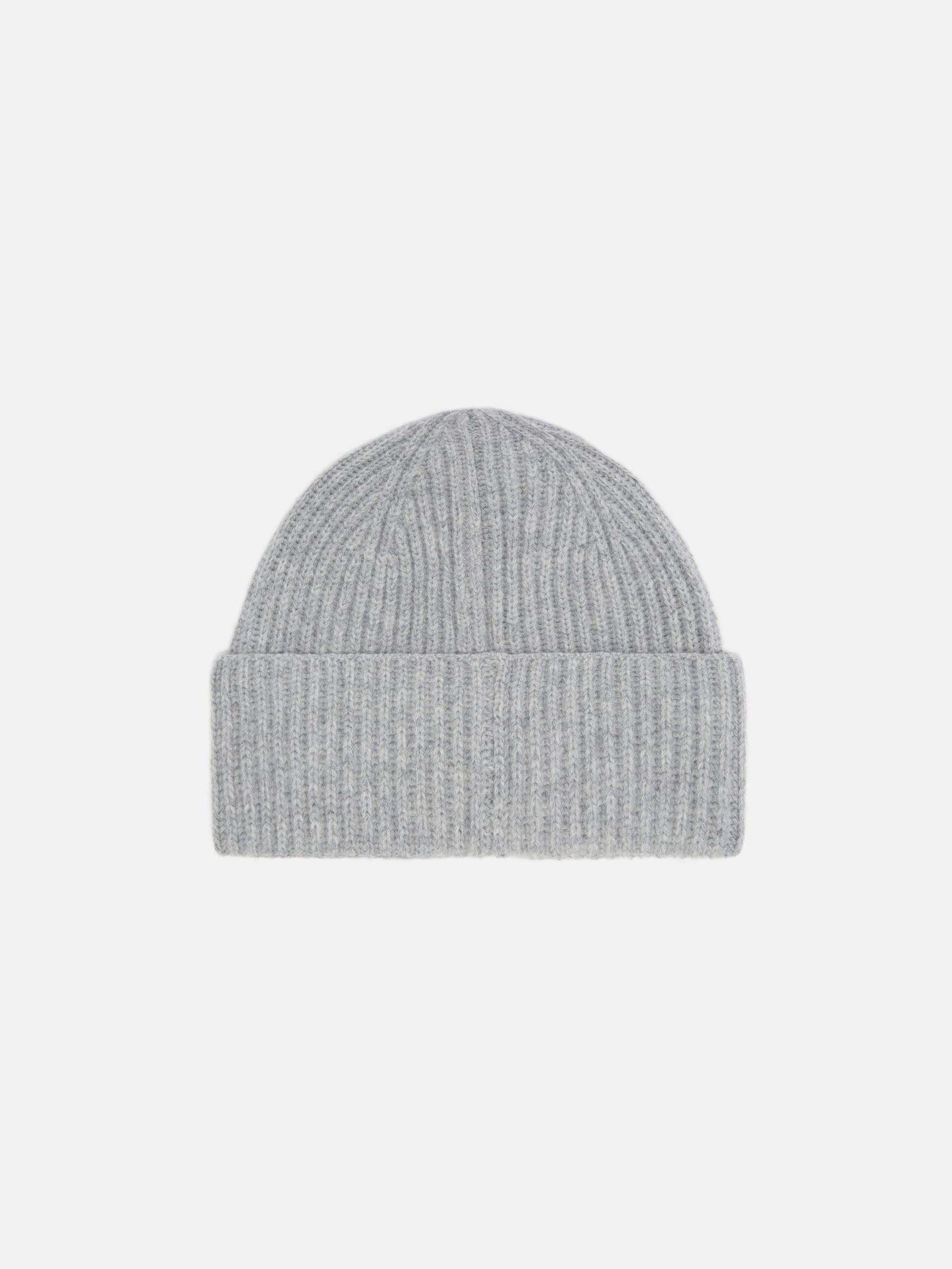Moss Beanie in gray melange ribbed knit with St. Barth embroidery