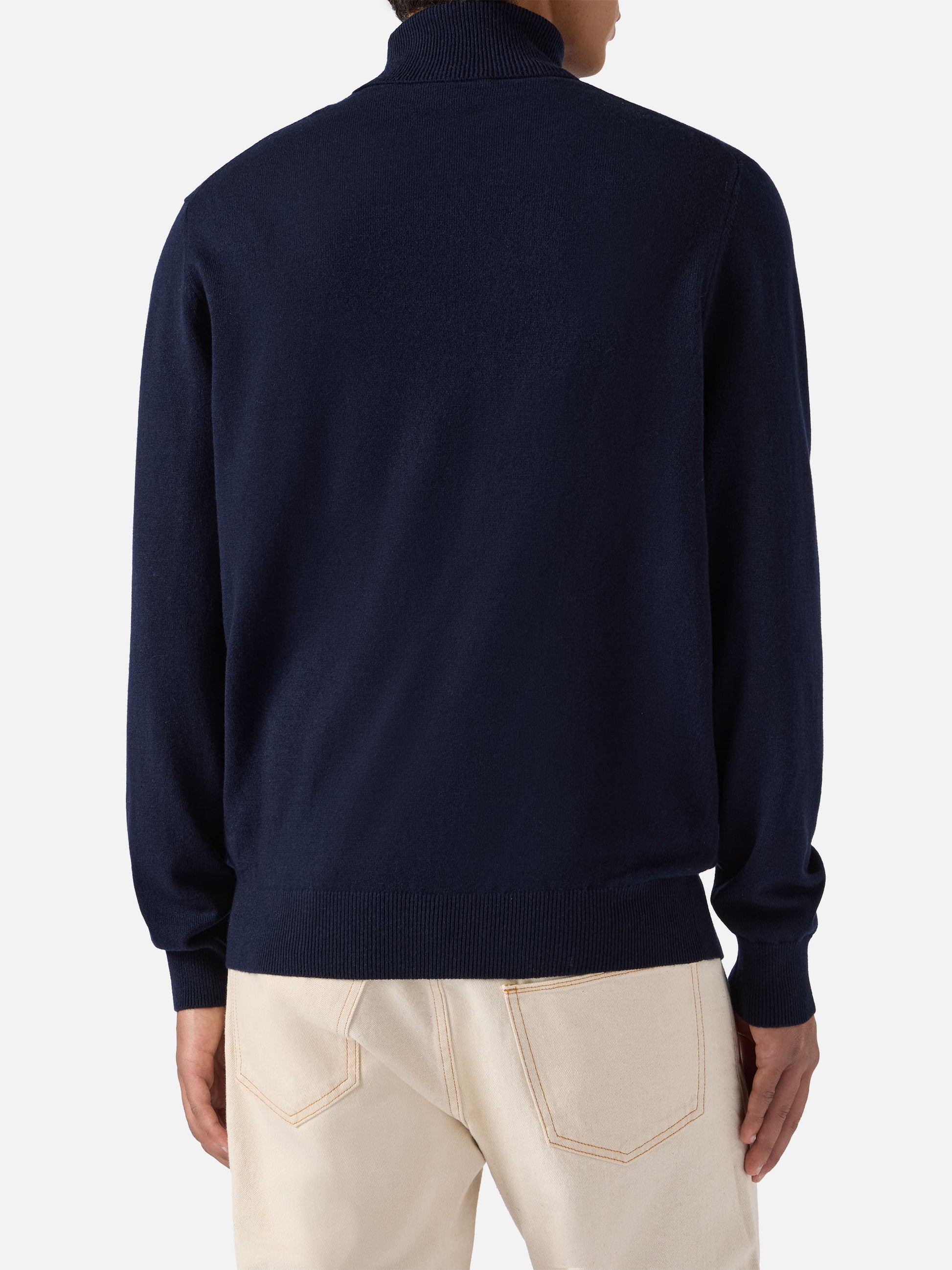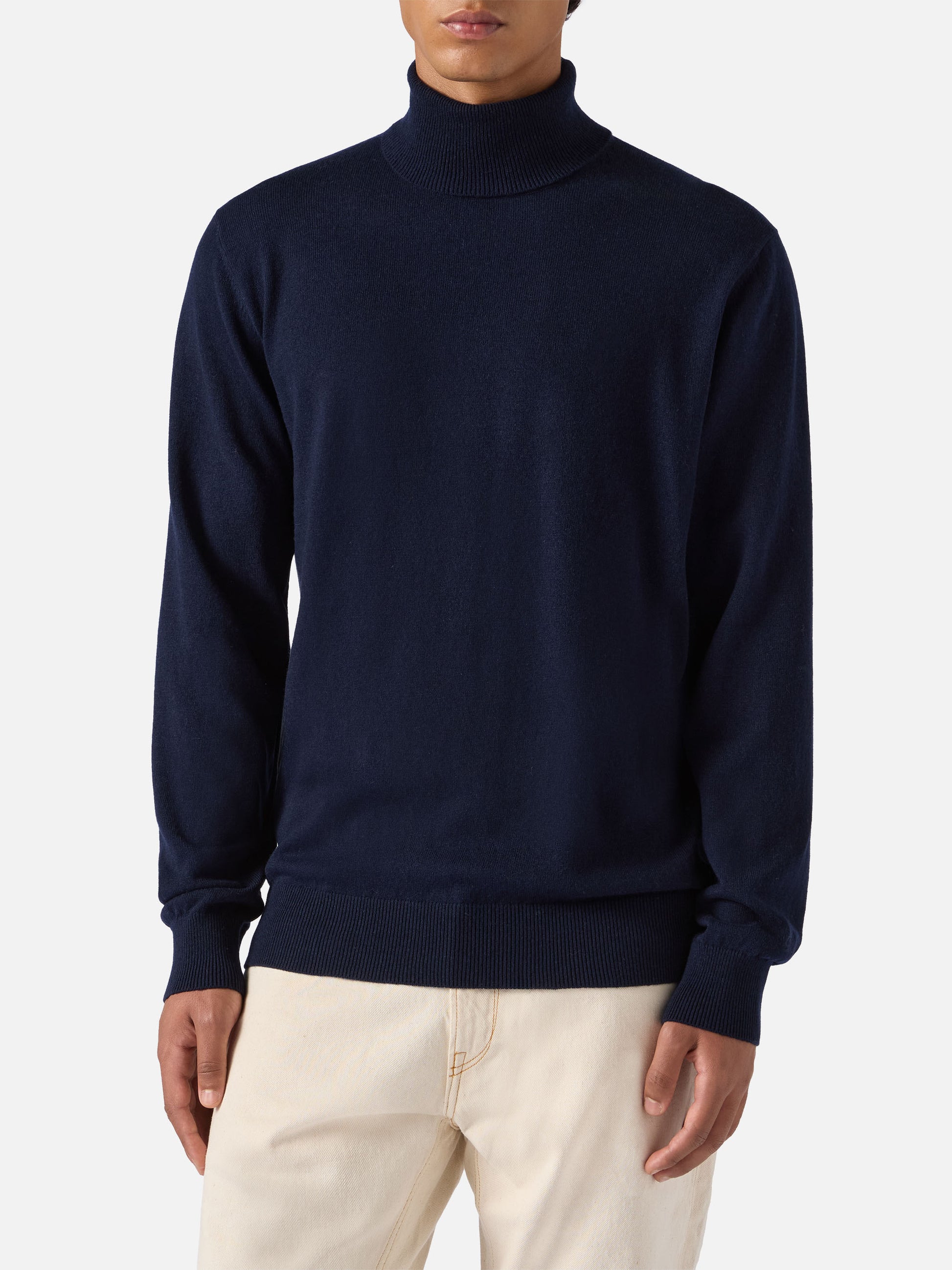 Turtleneck sweater Bond in night blue merino wool and cashmere