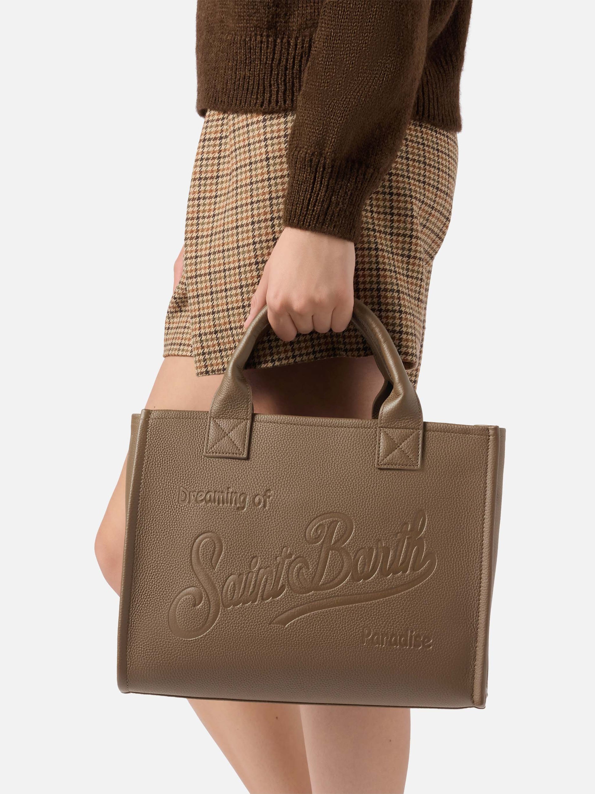 Große Vanity Bag Schultertasche aus braunem, gehämmertem Leder
