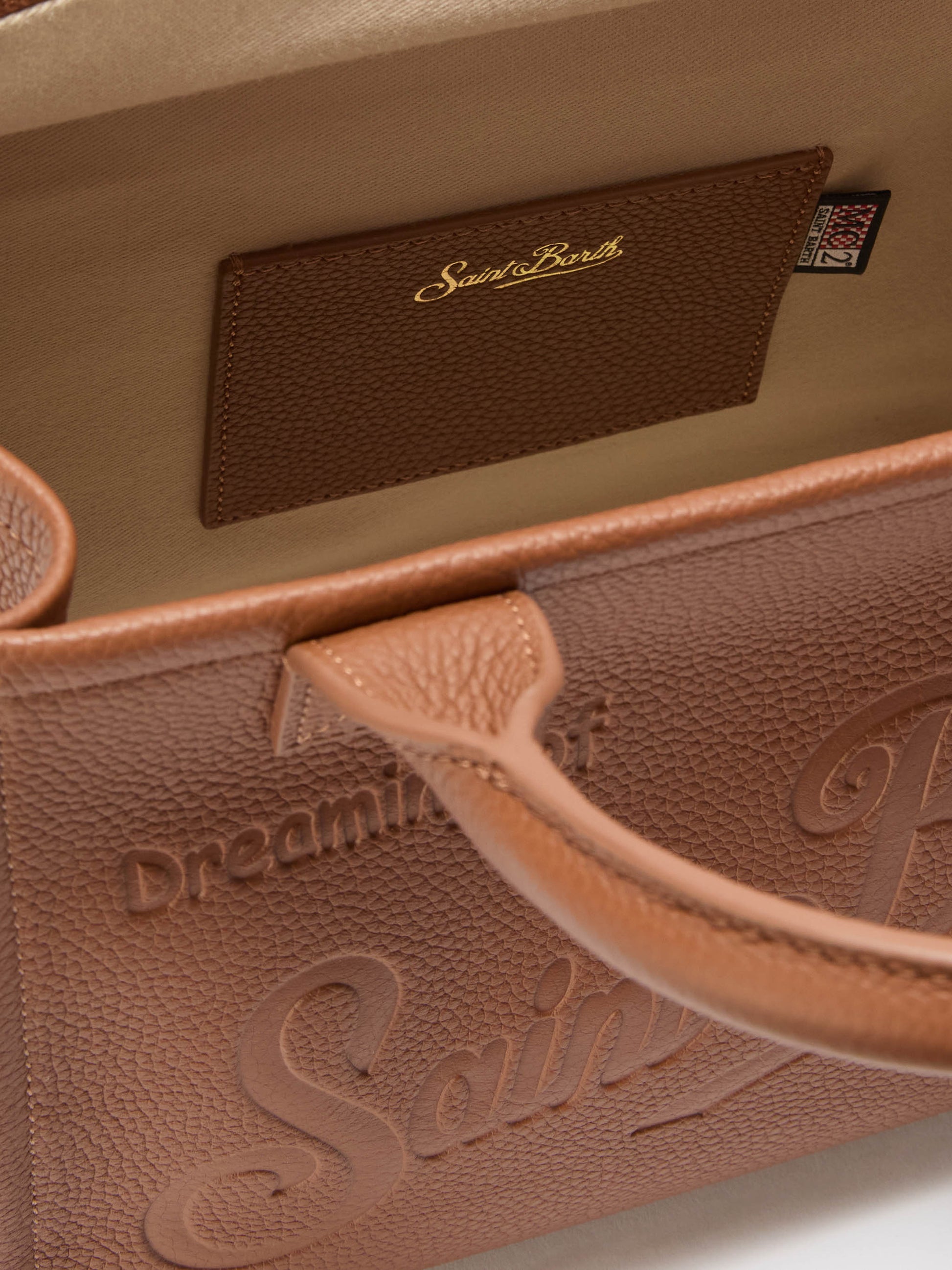 Vanity Bag Midi Shoulder Bag in camel hammered leather
