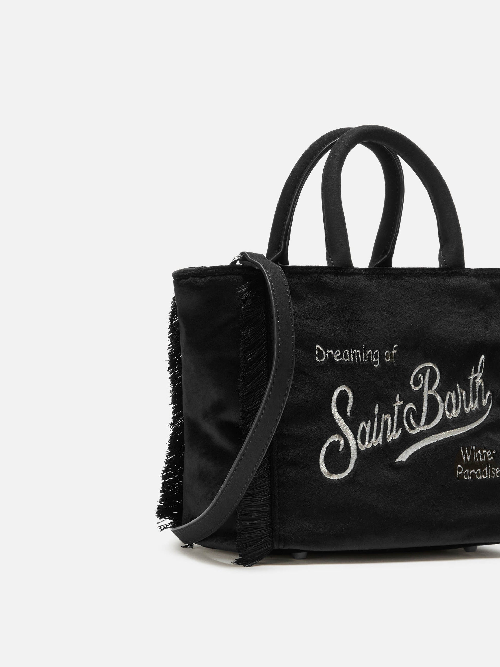 Vanity Mini Velvet Handbag in black velvet and faux suede