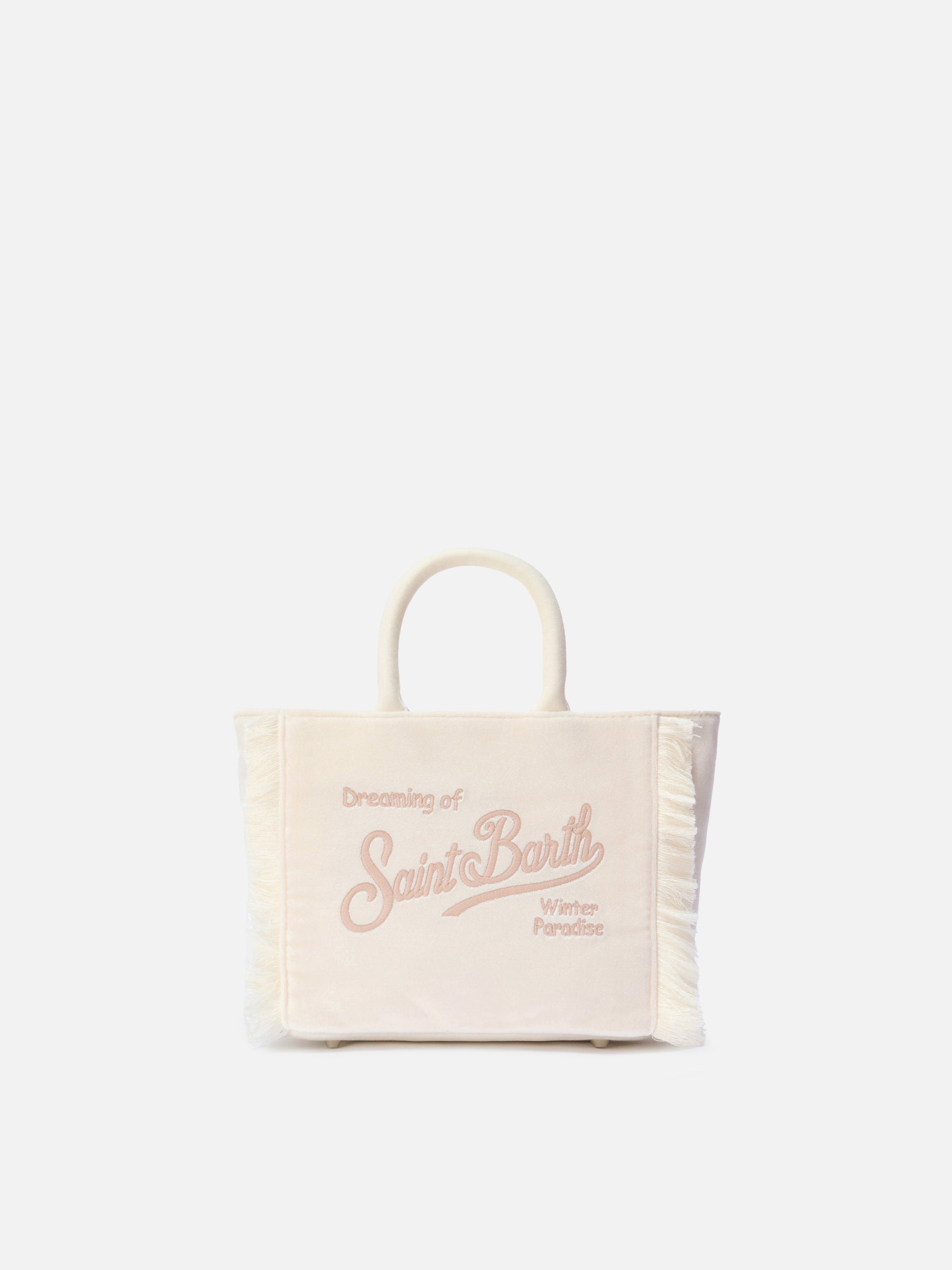 Vanity Mini Velvet Handbag in white velvet and faux suede
