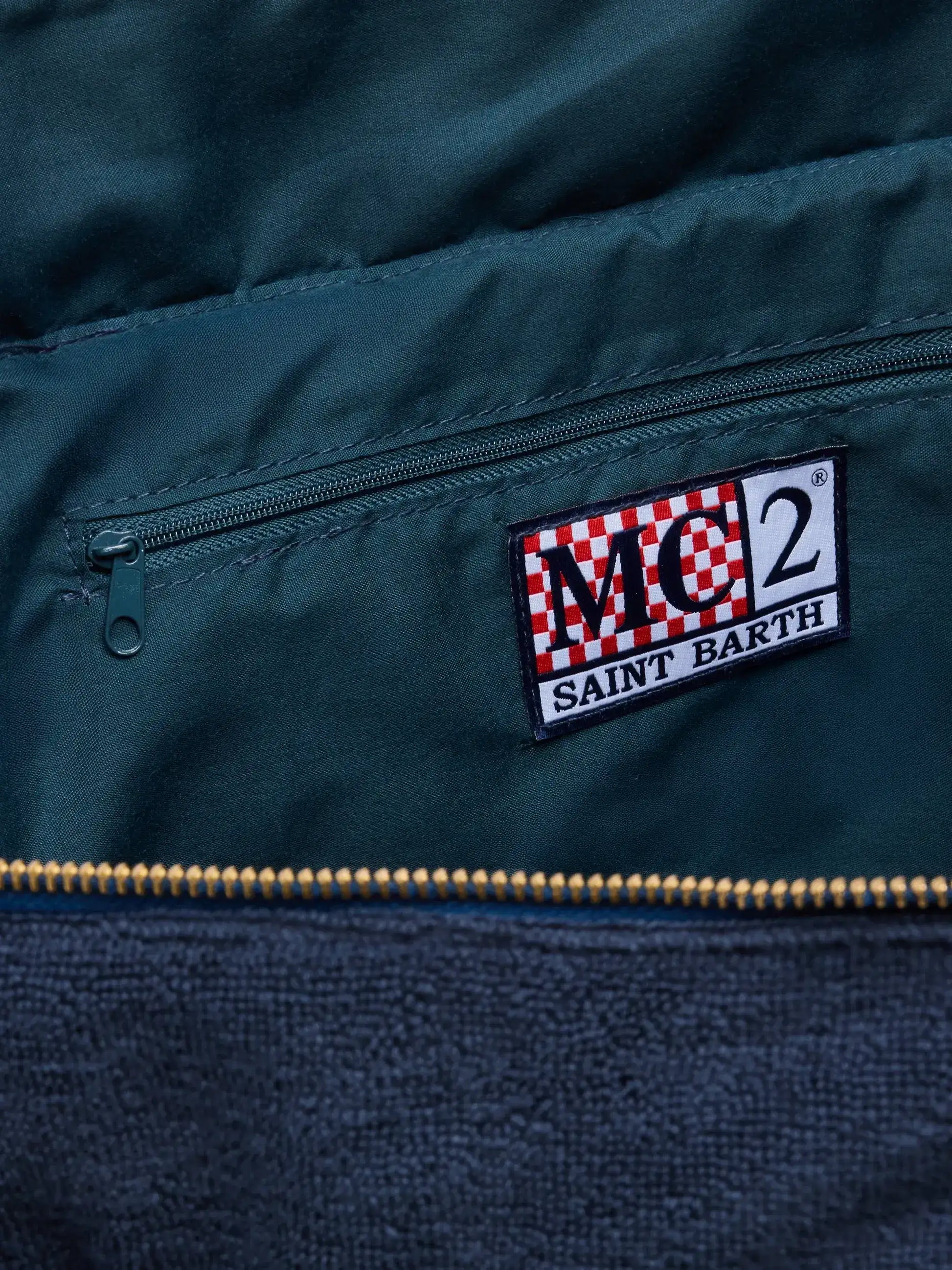 Marineblaue Einkaufstasche Vanity Terry mit geprägtem Logo