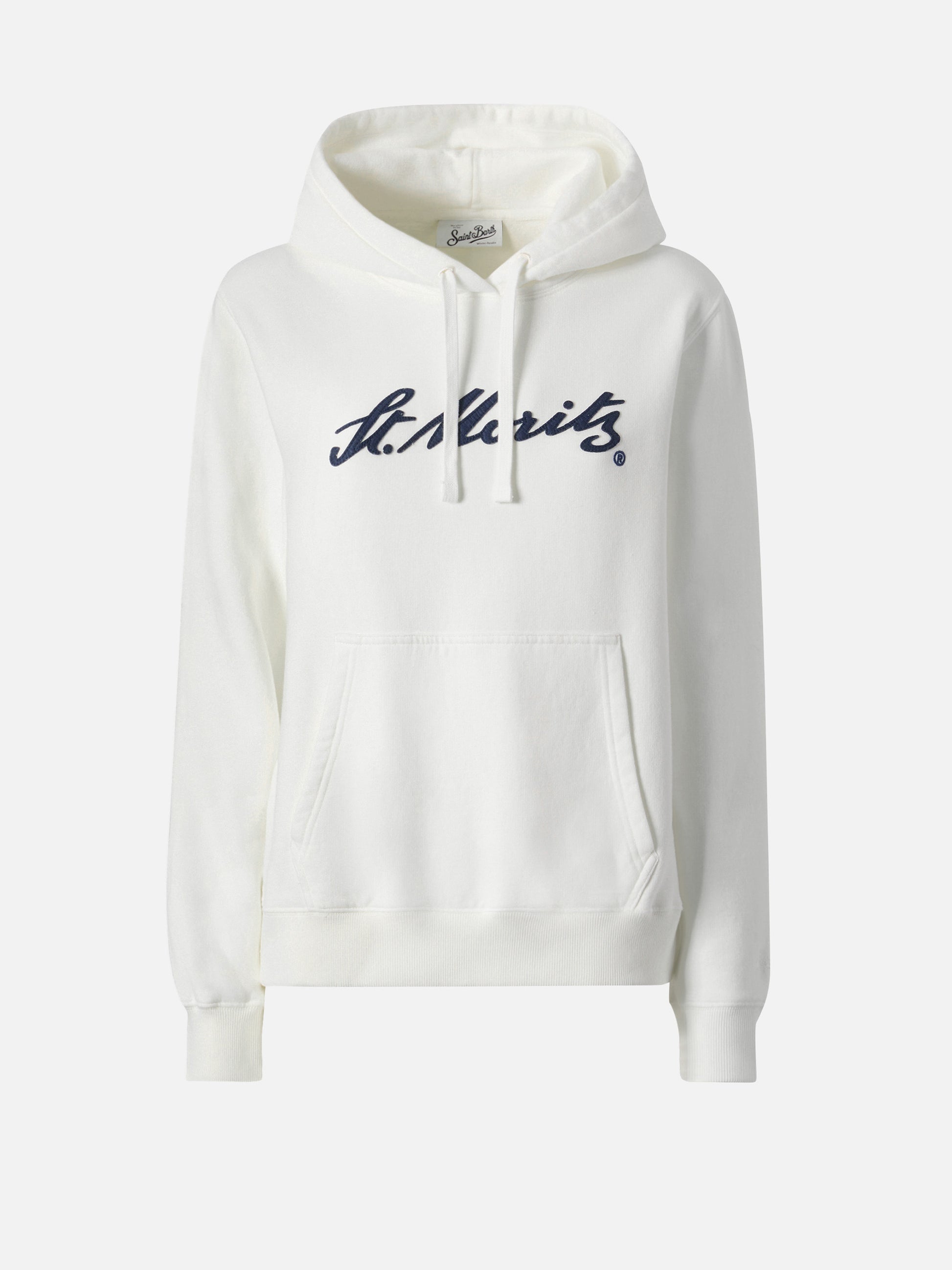 Virginia-Baumwollhoodie in Weiß mit St. Moritz-Stickerei | ST. MORITZ SONDEREDITION