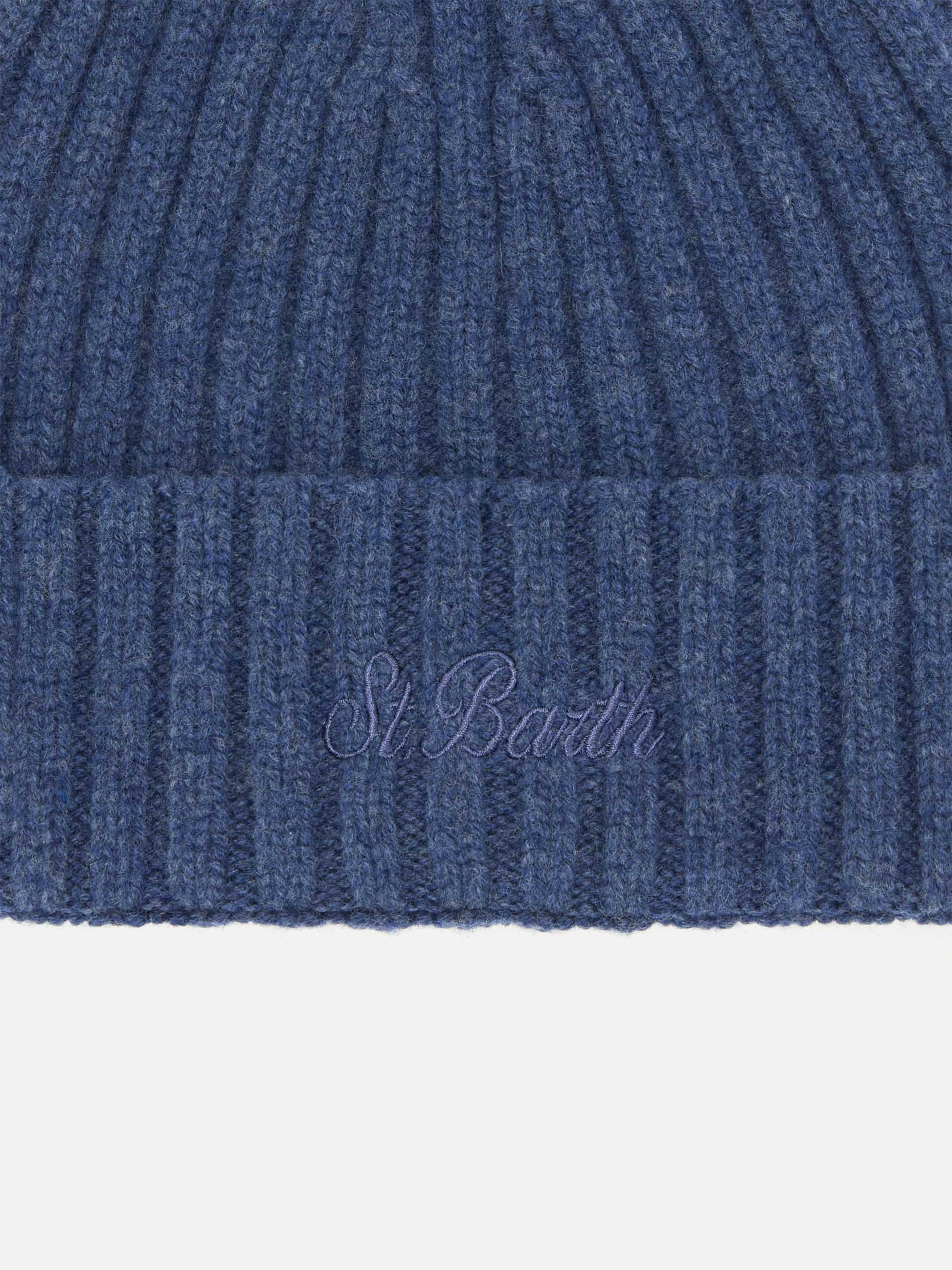 Wengen beanie in denim blue with St. Barth embroidery on the turn-up