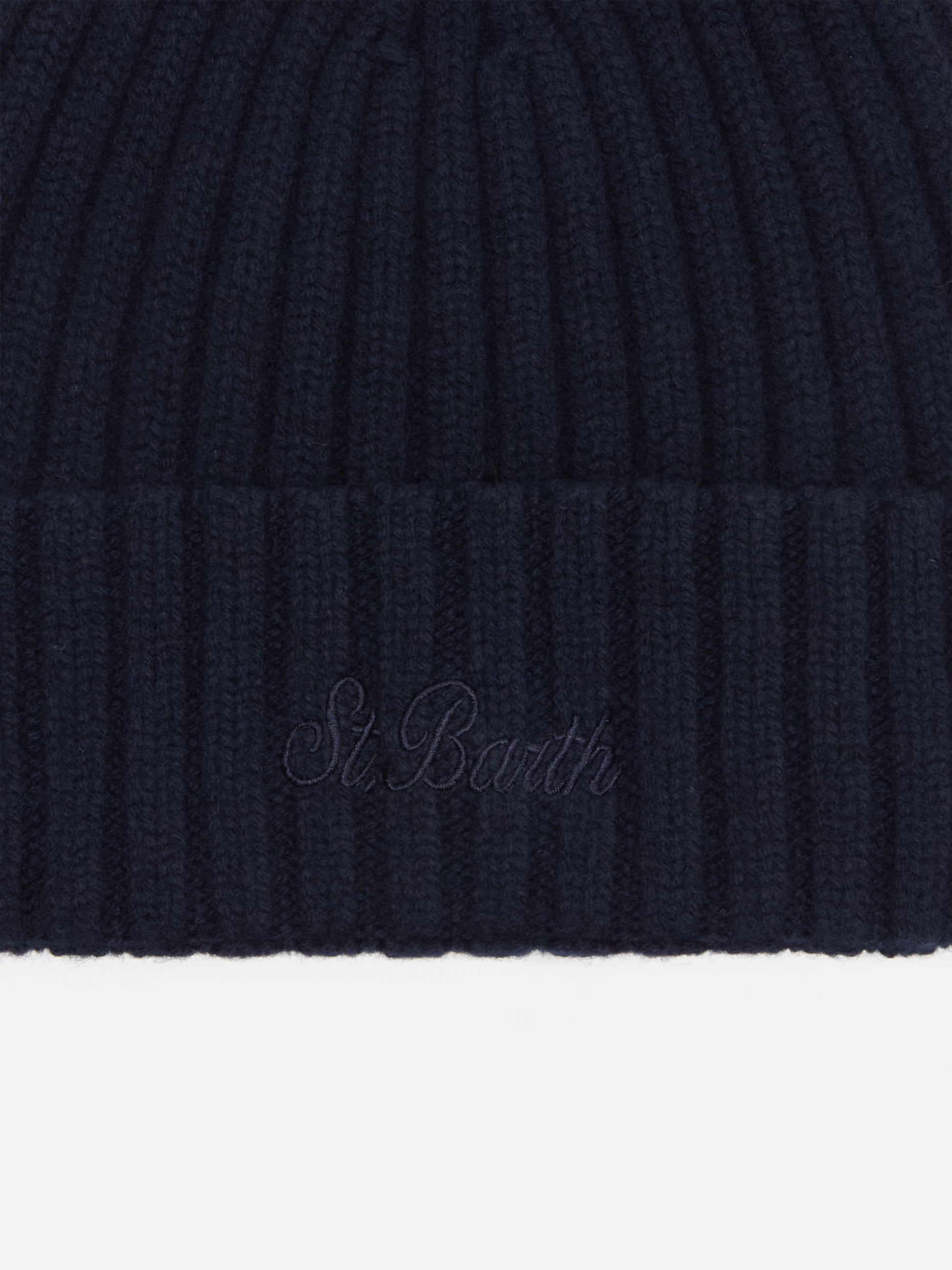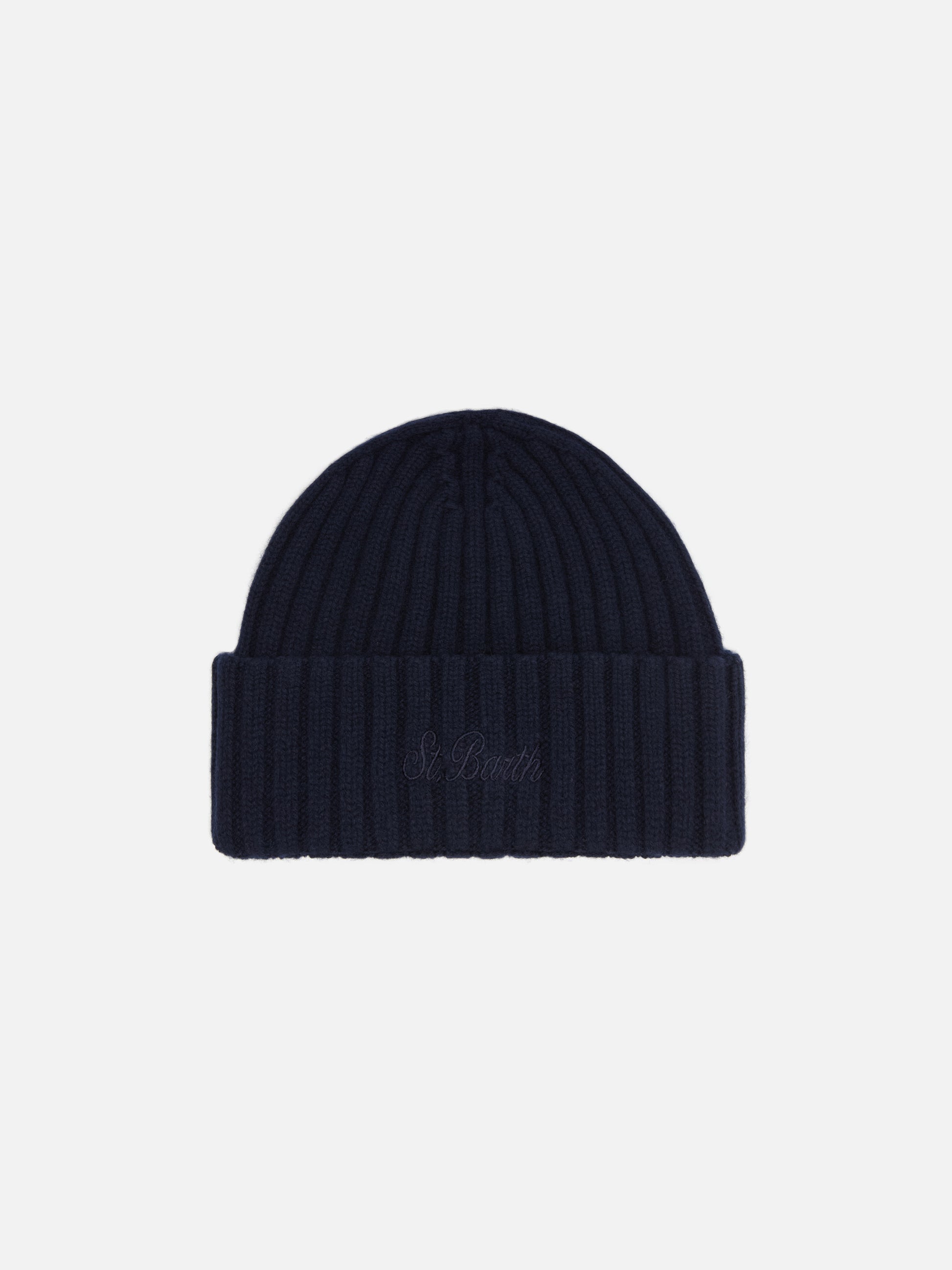 Wengen beanie in wool navy blue with St. Barth embroidery on the turn-up