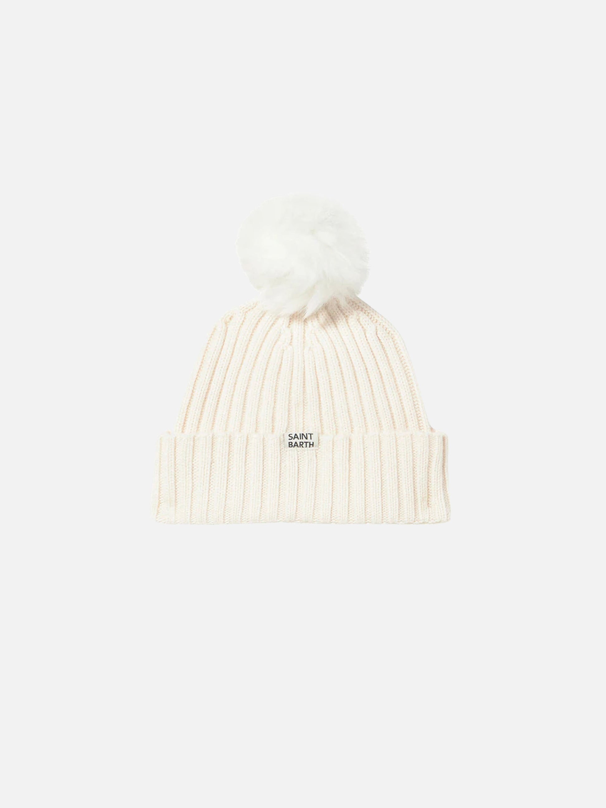 Wengen Jr Mütze aus Kaschmirmischung in Weiß mit Favolosa-Stickerei