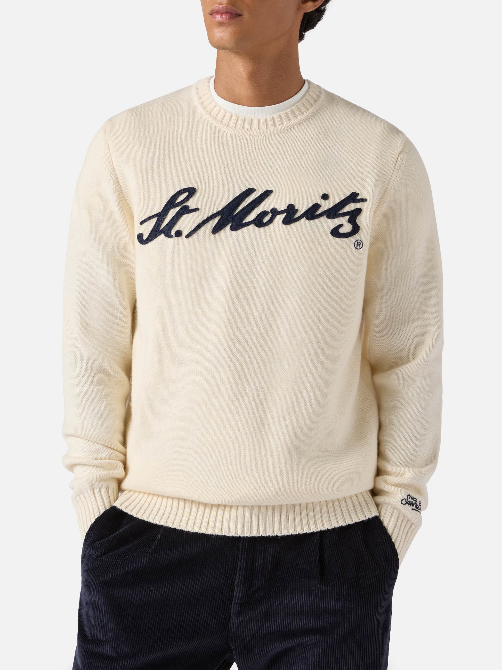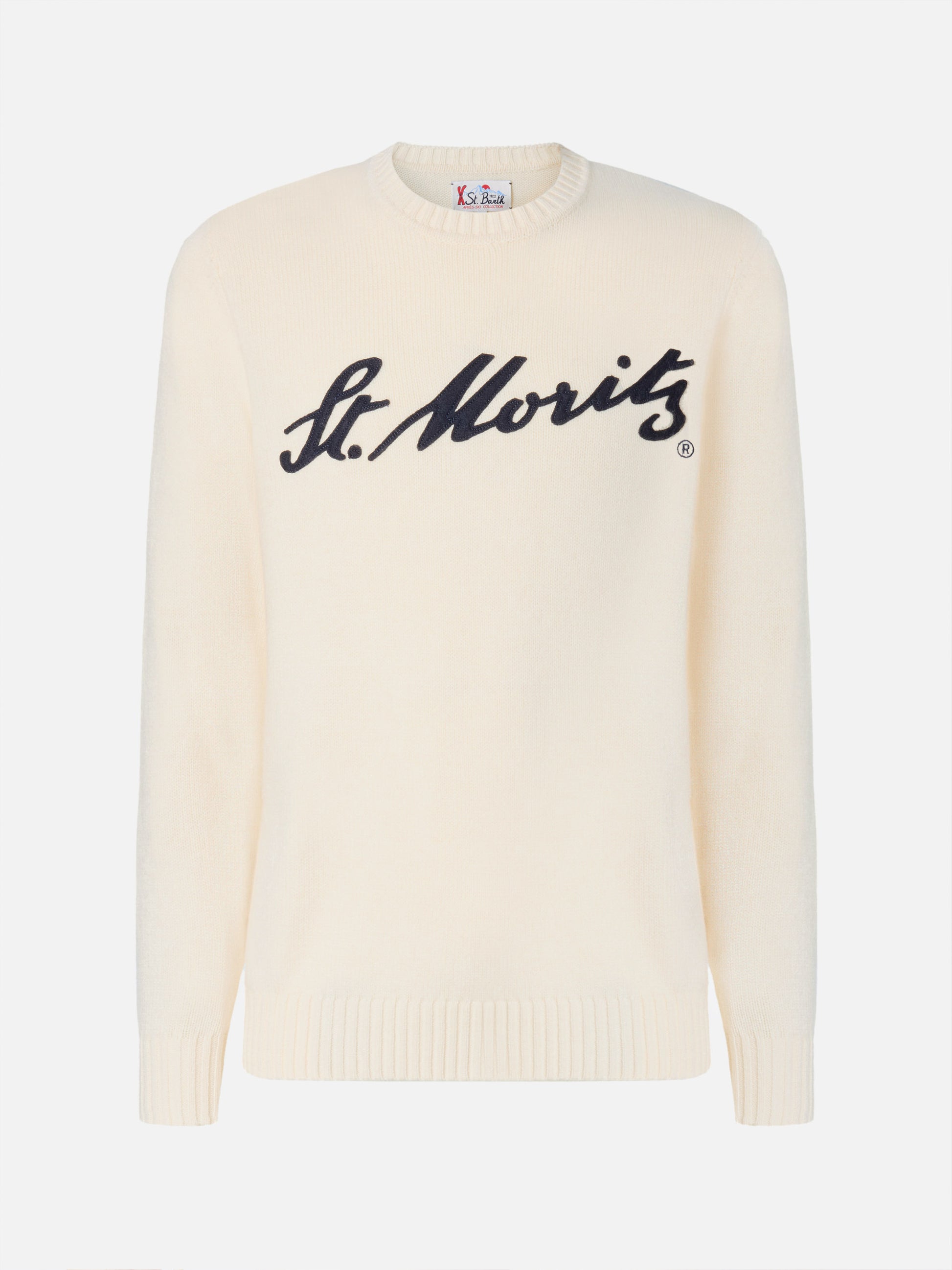 Weißer Bombardino Light Pullover mit St. Moritz Jacquard | ST. MORITZ TOP OF THE WORLD SPECIAL EDITION