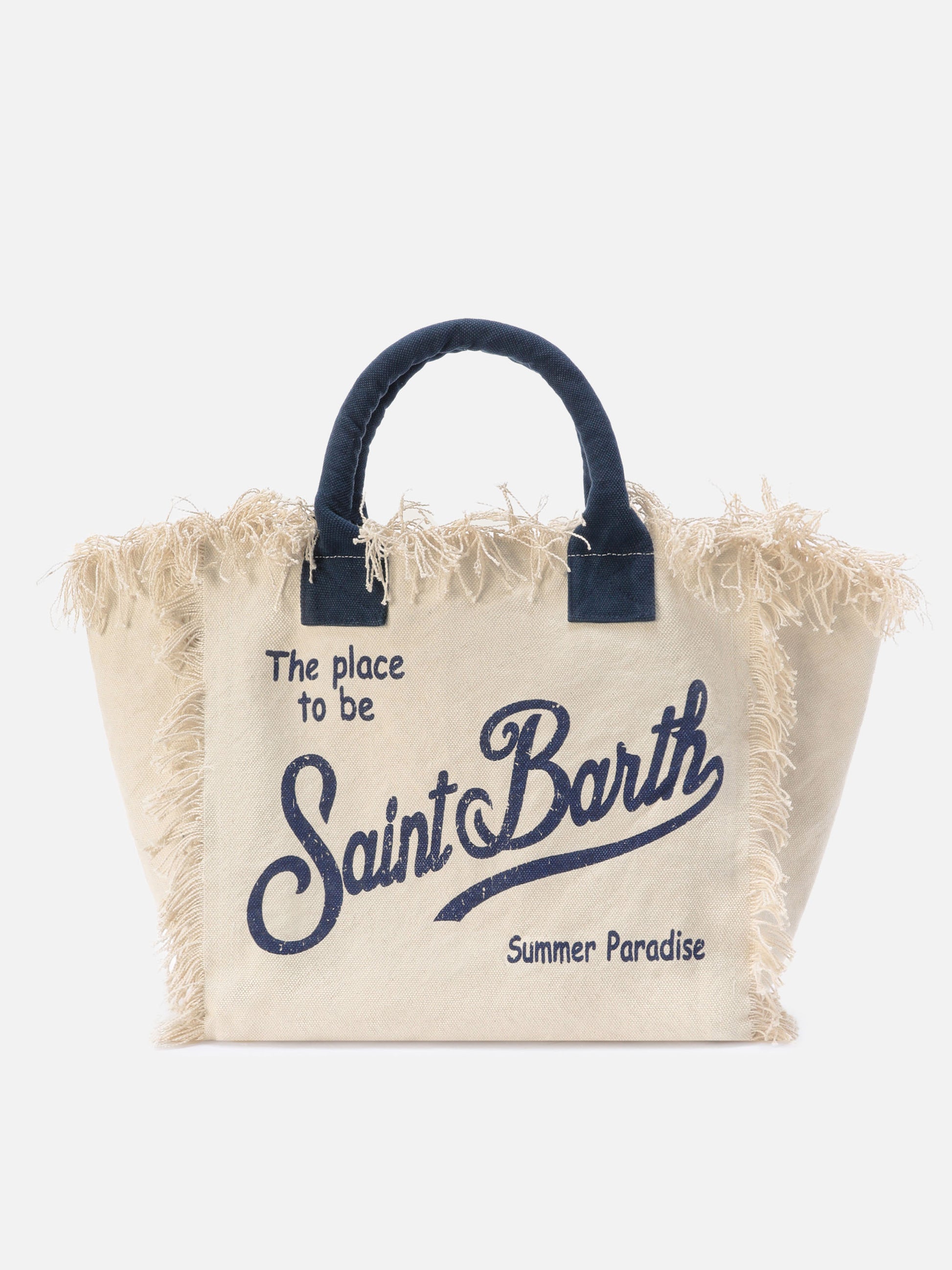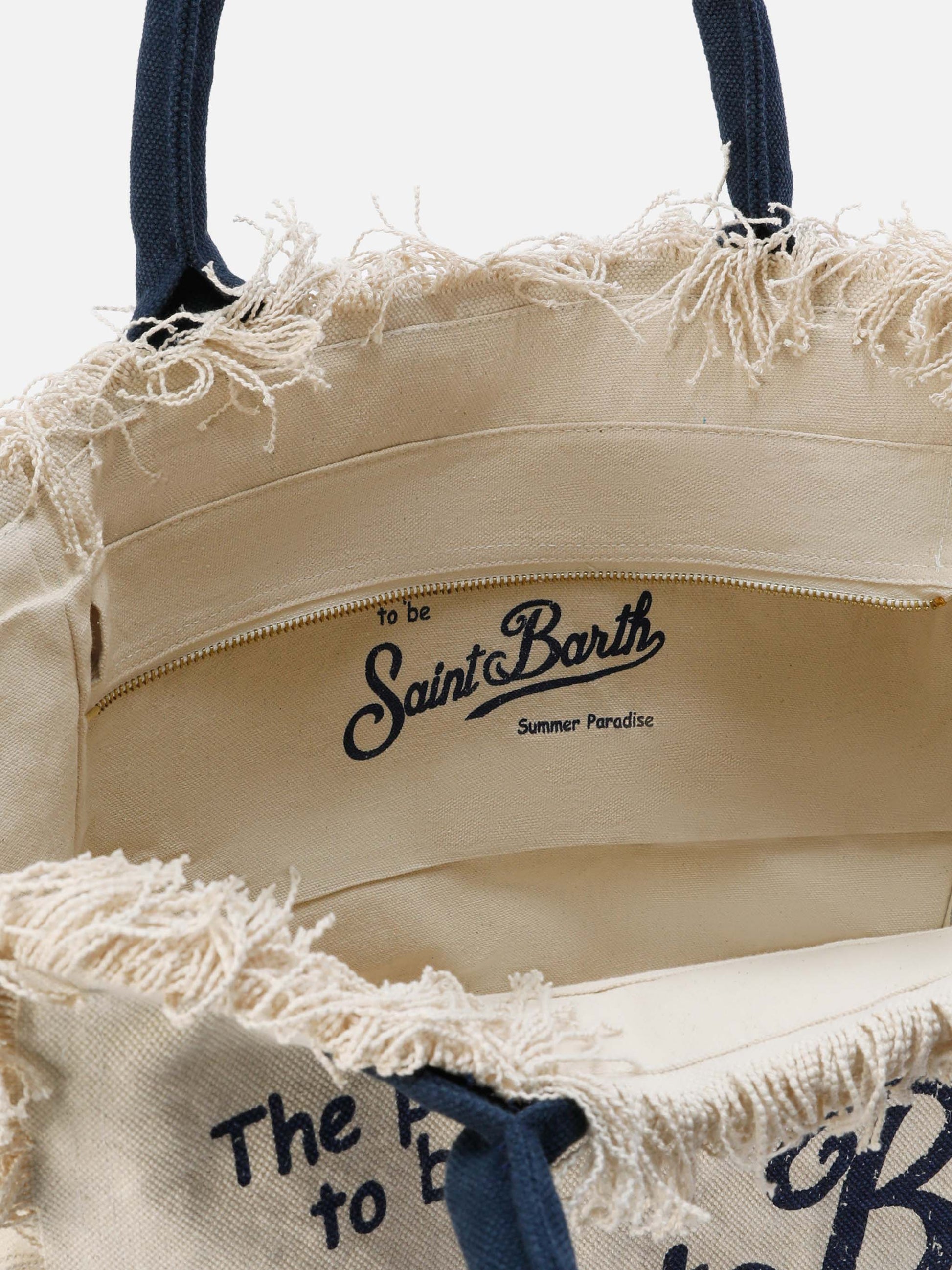 White canvas Vanity regular bag with fringes