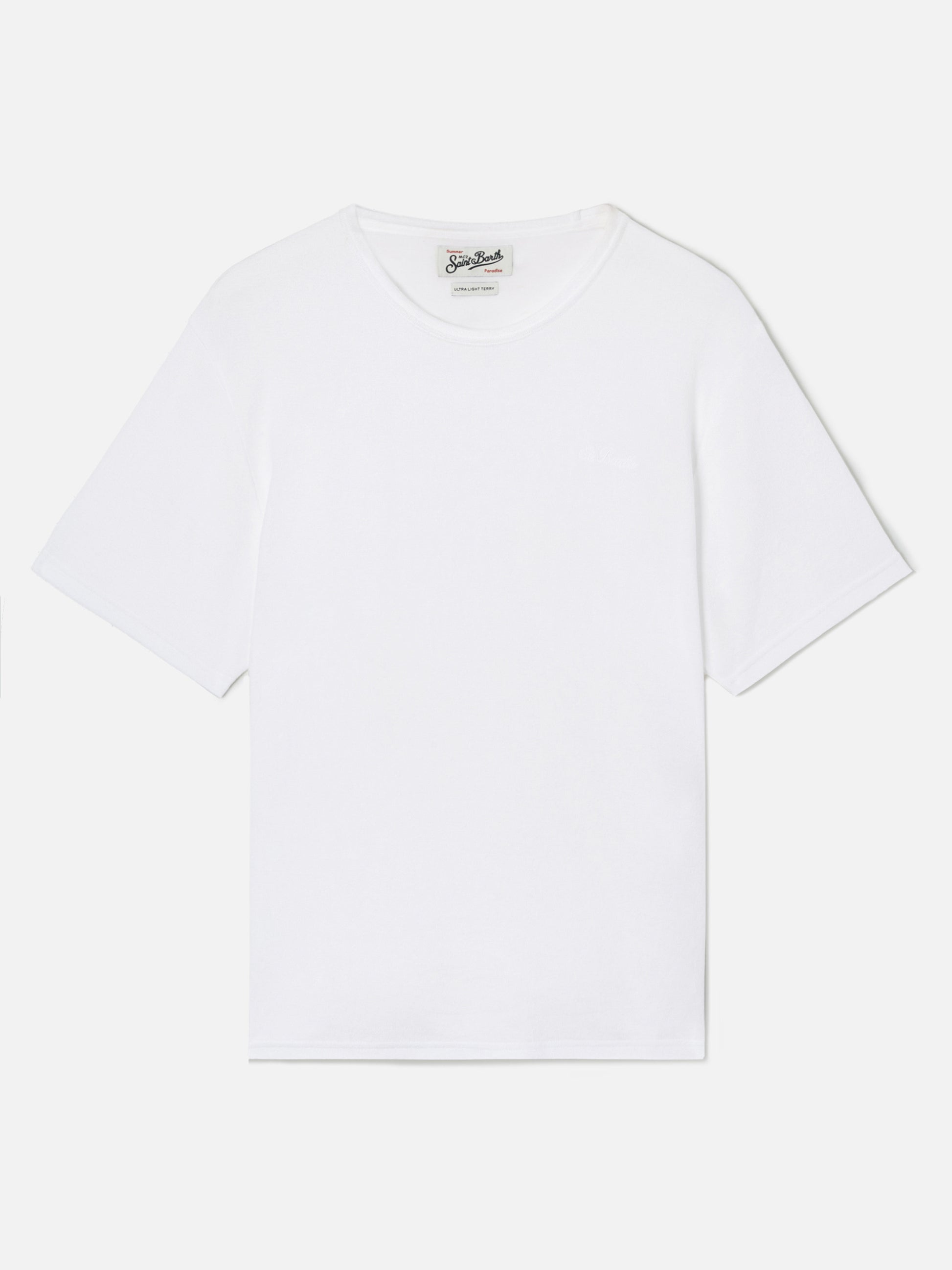 https://it.mc2saintbarth.com/de/products/white-gary-cotton-terry-effect-t-shirt-with-logo-embroidery10778902692186White Gary cotton terry-effect t-shirt with logo embroidery99,00https:files/UID_GAR000201163L-MAN-T-SHIRT-WHITE-MC2-MC2_2.jpghttps:files/UID_GAR000201163L-MAN-T-SHIRT-WHITE-MC2-MC2_2.jpgEURInStockT-SHIRT650948215130Alle Produkte – nur von Man649134276954AVADA - Bestseller647457341786Einfarbige T-Shirts280041652408Mann Terry Mania672324452698New In - Man288164774072T-Shirts für Herren654690484570UpSelling_Man_T-ShirtsThe Gary t-shirt is crafted from blended cotton terry-effect fabric, designed to provide lightness, softness and comfort. The solid color design enhances the texture of the fabric and the essential construction of the garment. A tonal St. Barth embroidery on the chest adds a discreet and distinctive detail. The style features a crew neckline, short sleeves and a straight line with a regular fit.