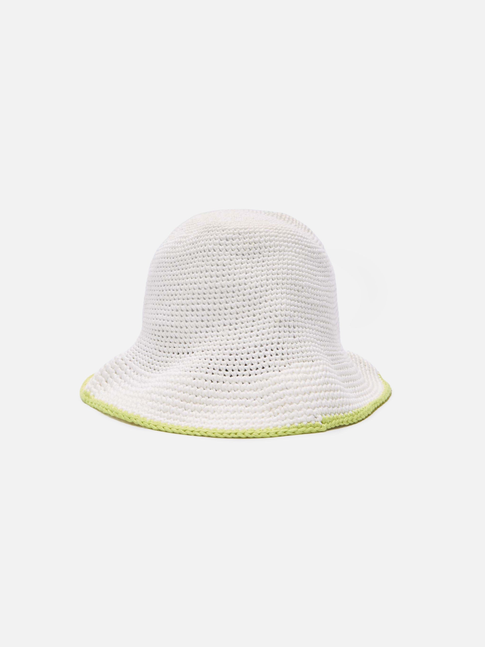 Frau häkelt Cloche