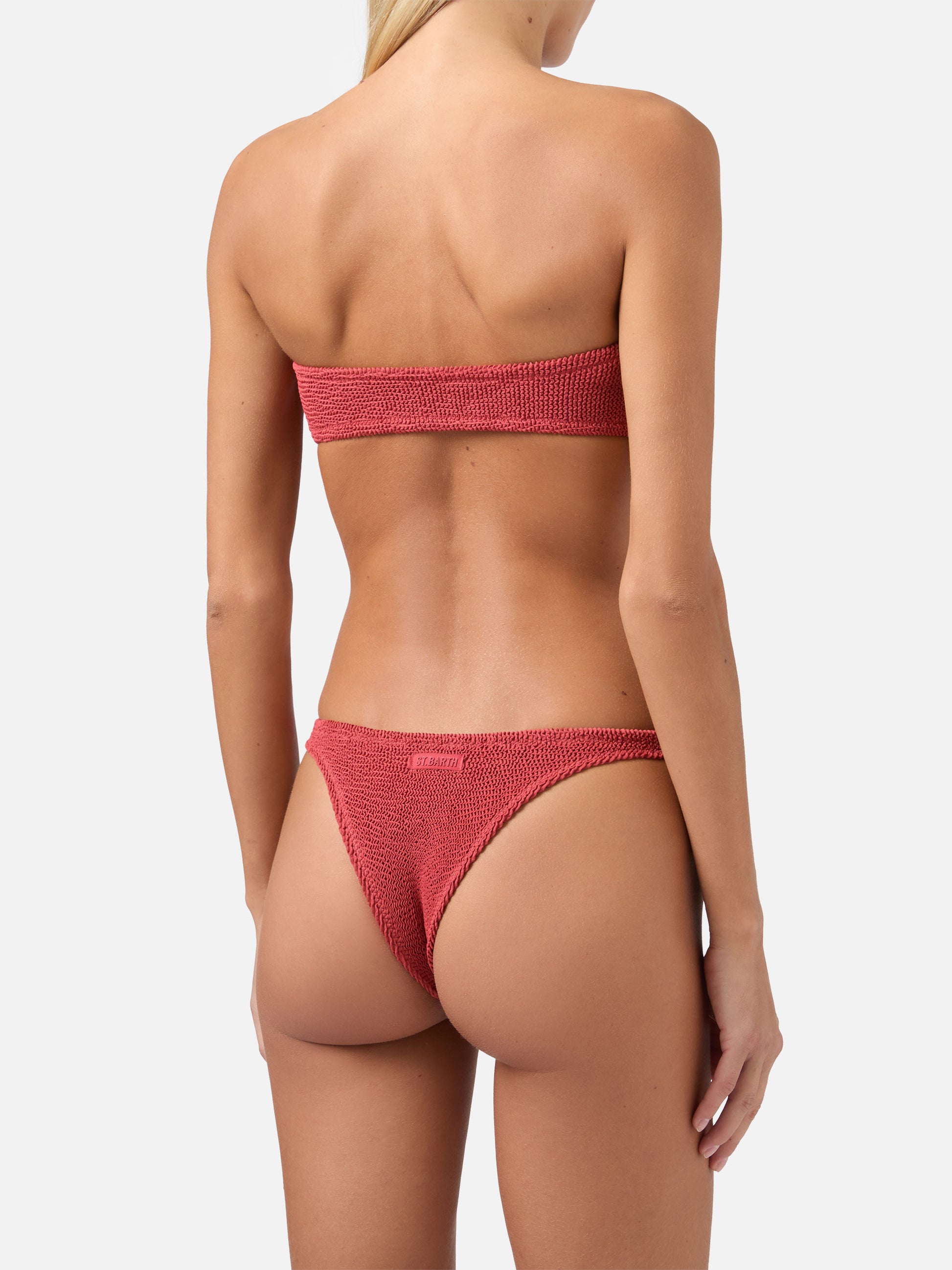 Bikini Yulia Naomi a fascia in tessuto crinkle rosso mattone
