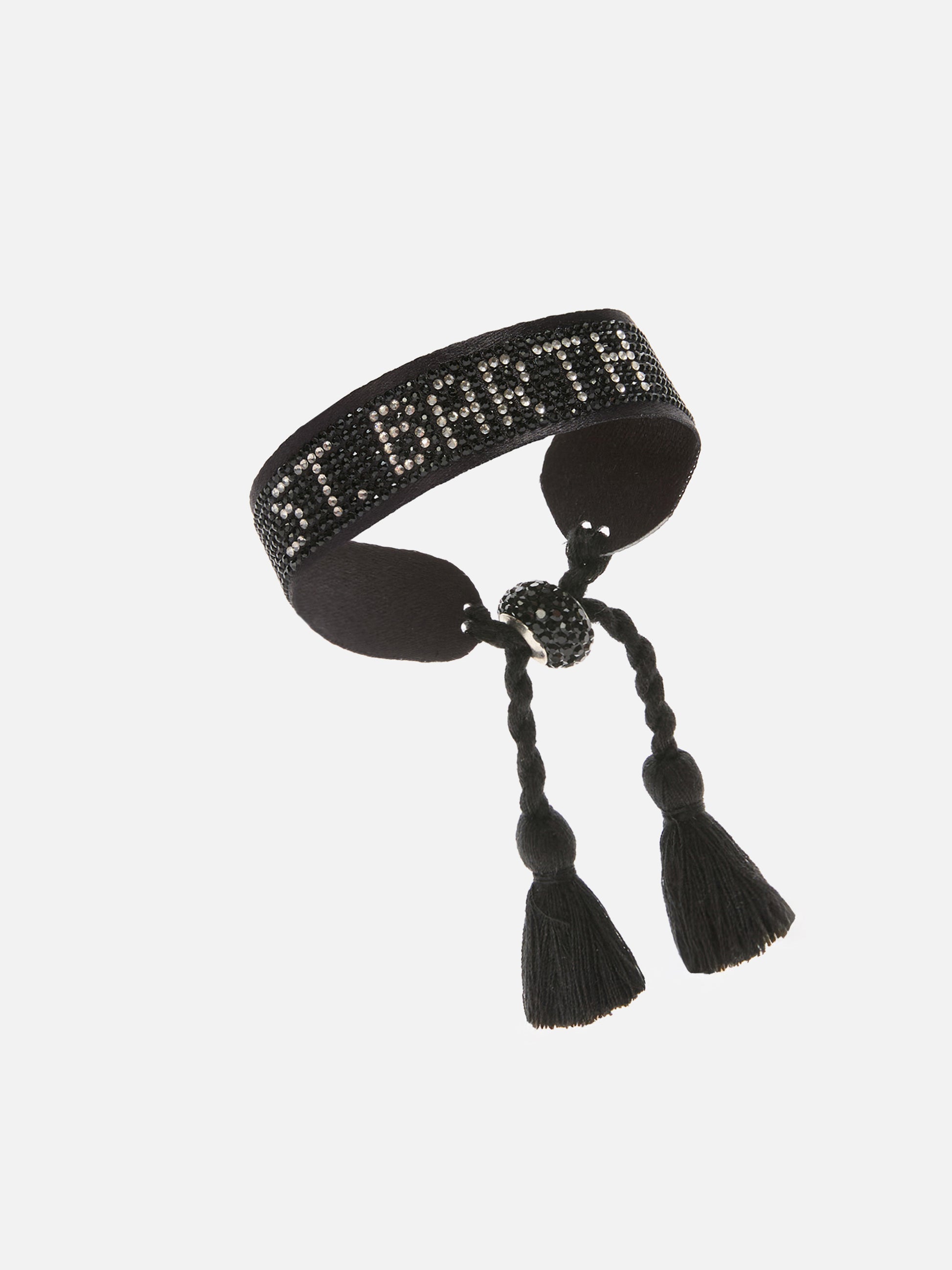 Bracciale in tessuto con lettering St. Barth in perline nere