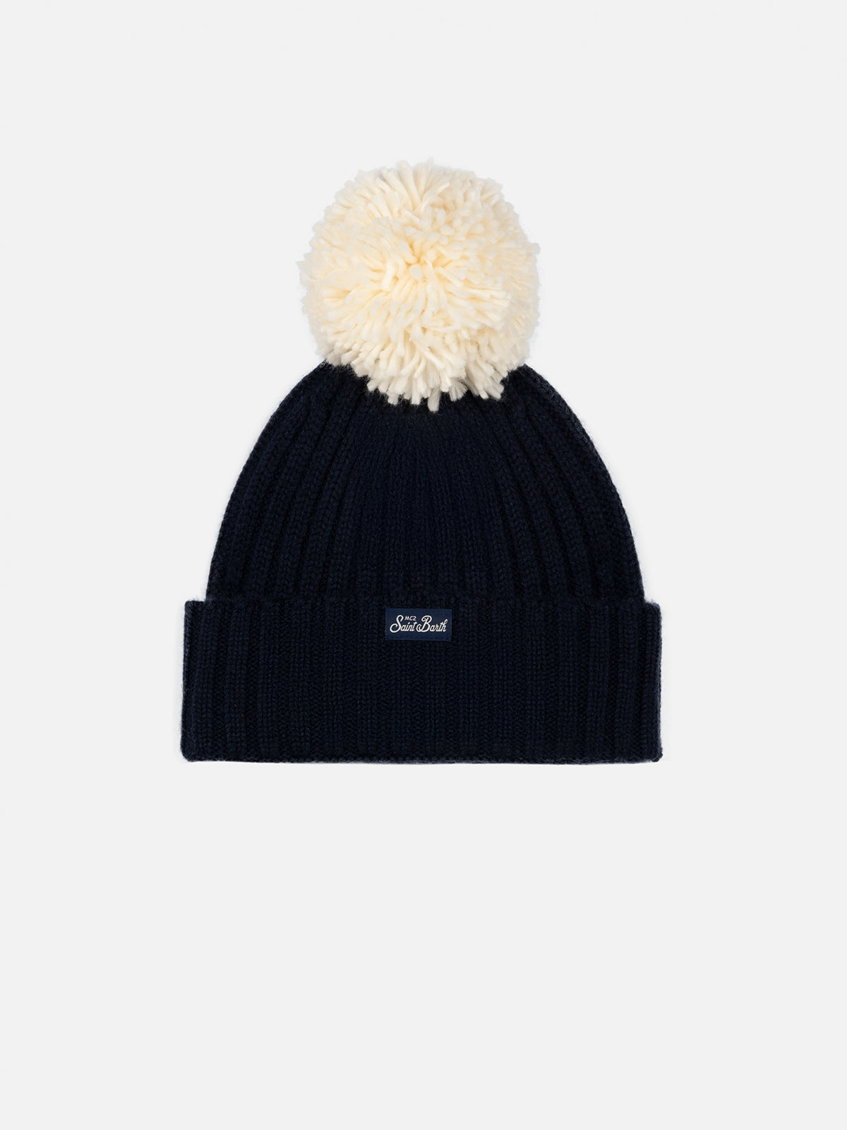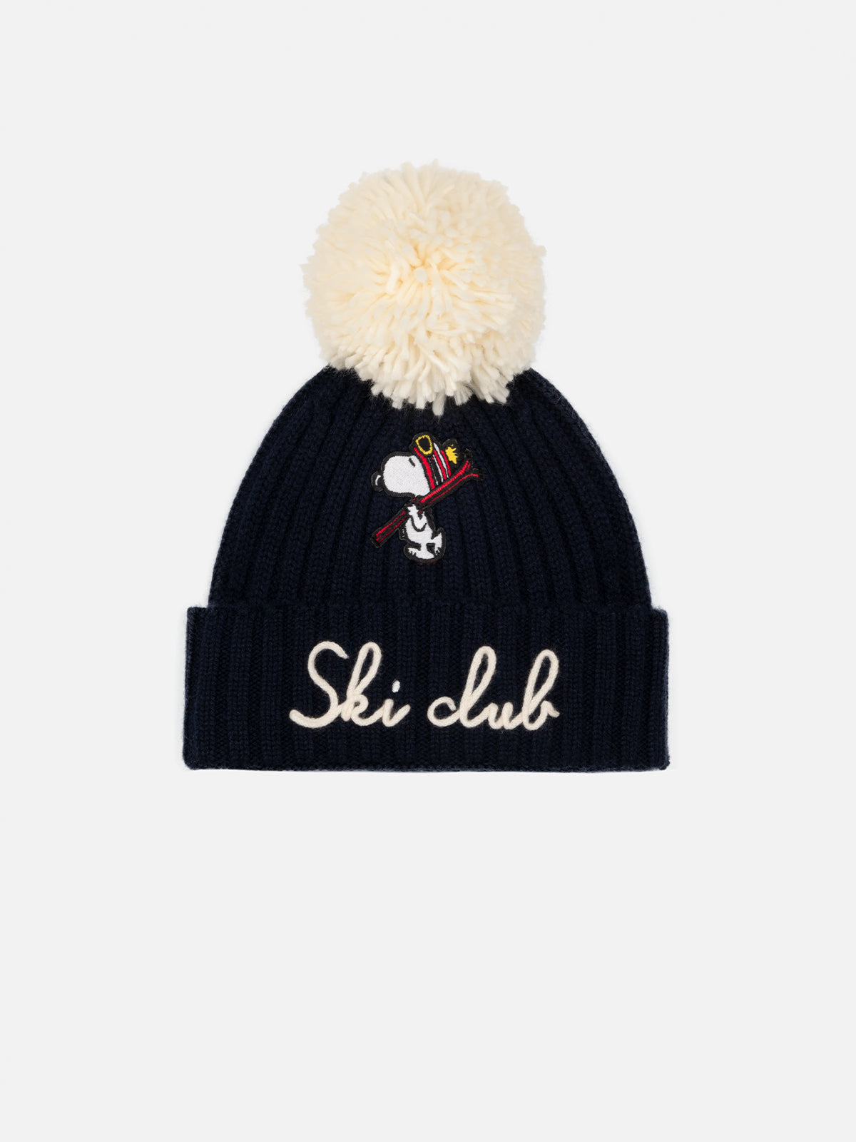 Cappello blu da bambino Wengen con pompon e ricamo Snoopy Ski Club | EDIZIONE SPECIALE SNOOPY PEANUTS