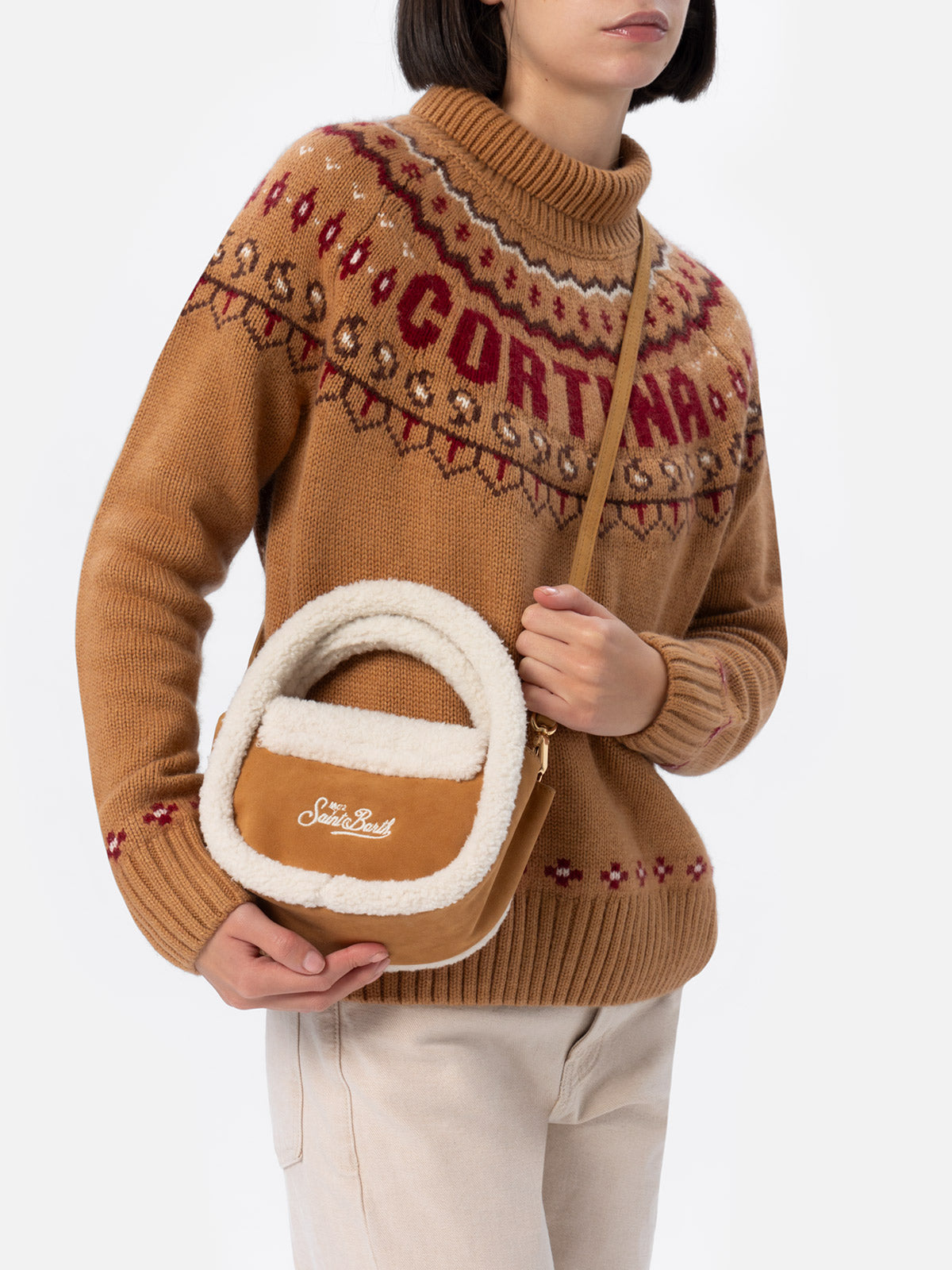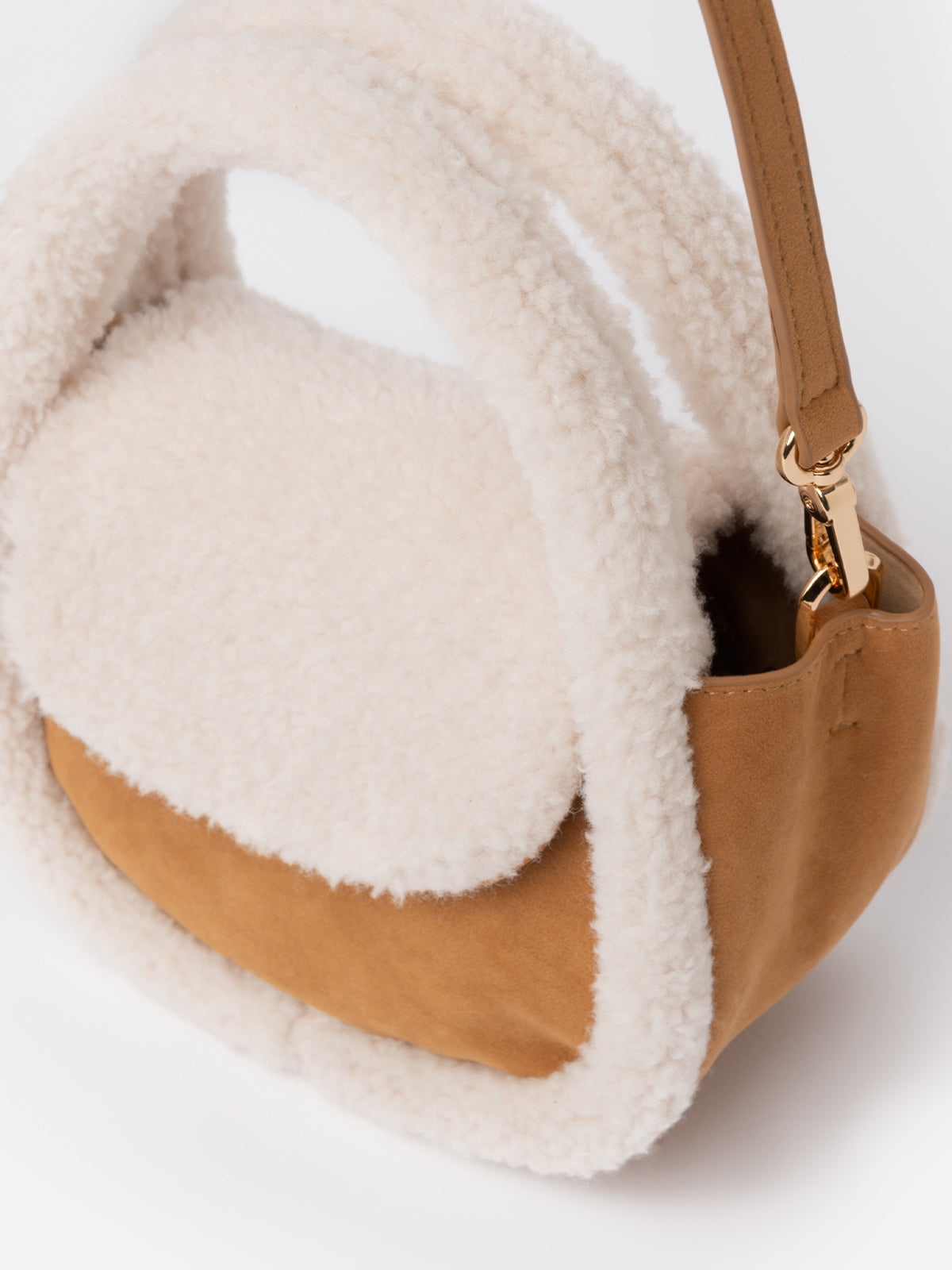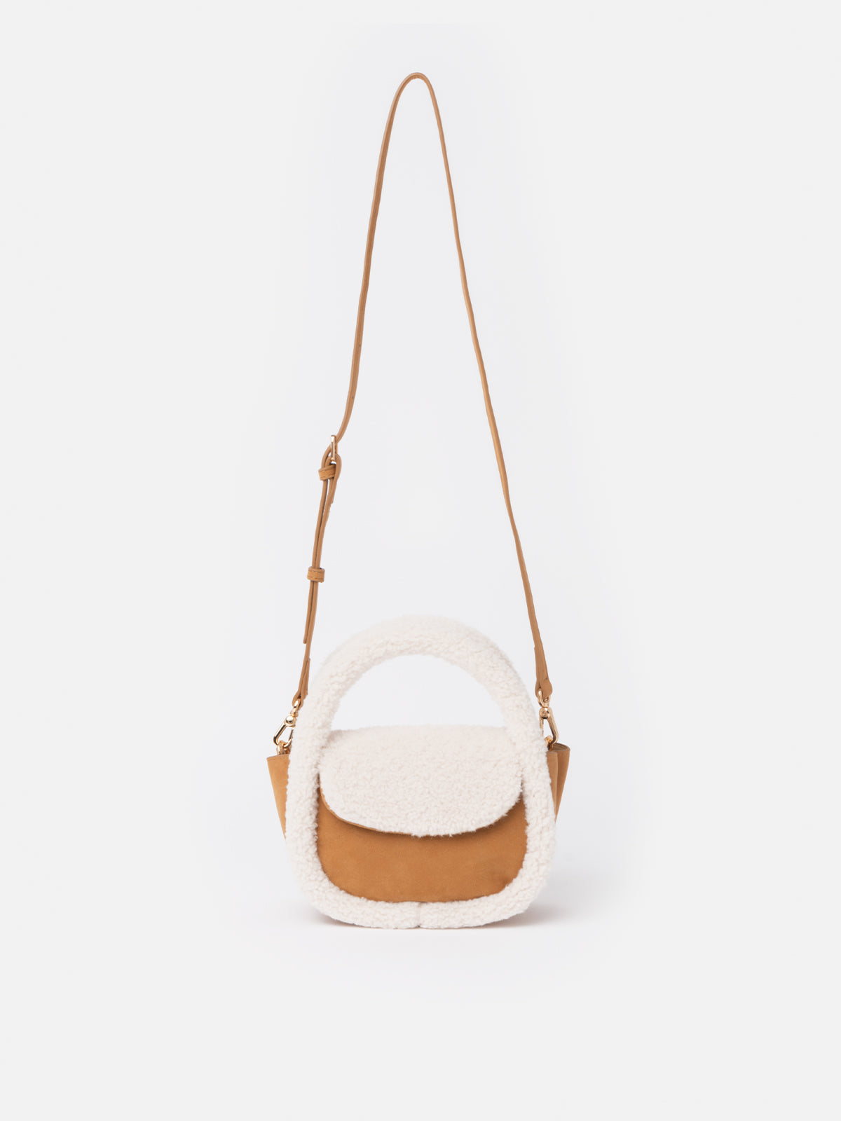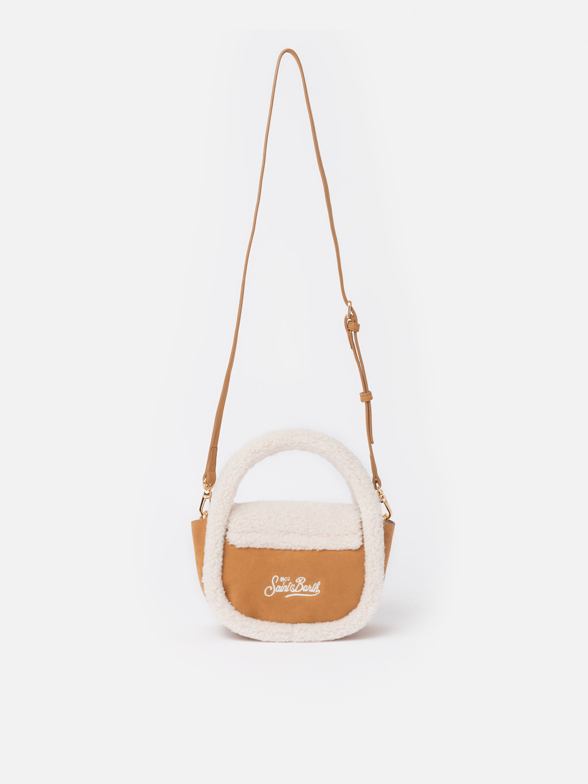 Borsa a tracolla Gilda in effetto montone cammello con dettagli in montone