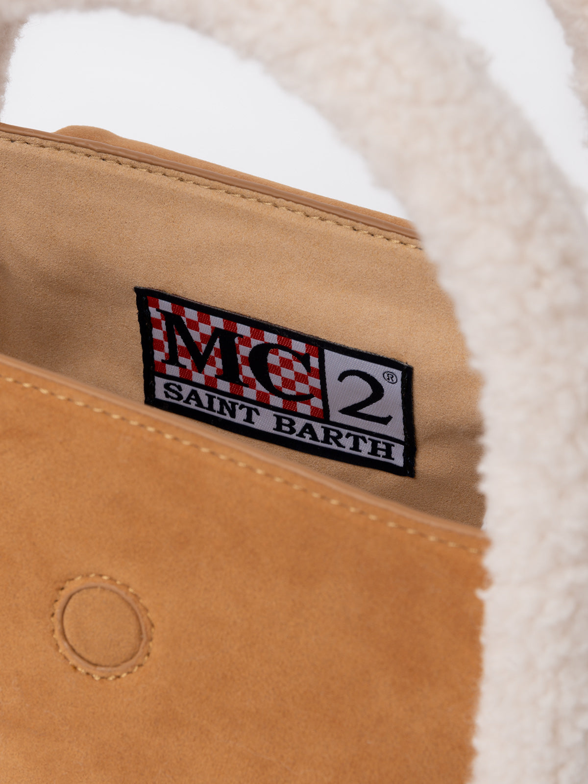 Manico, patta frontale e dettagli in montone bianco