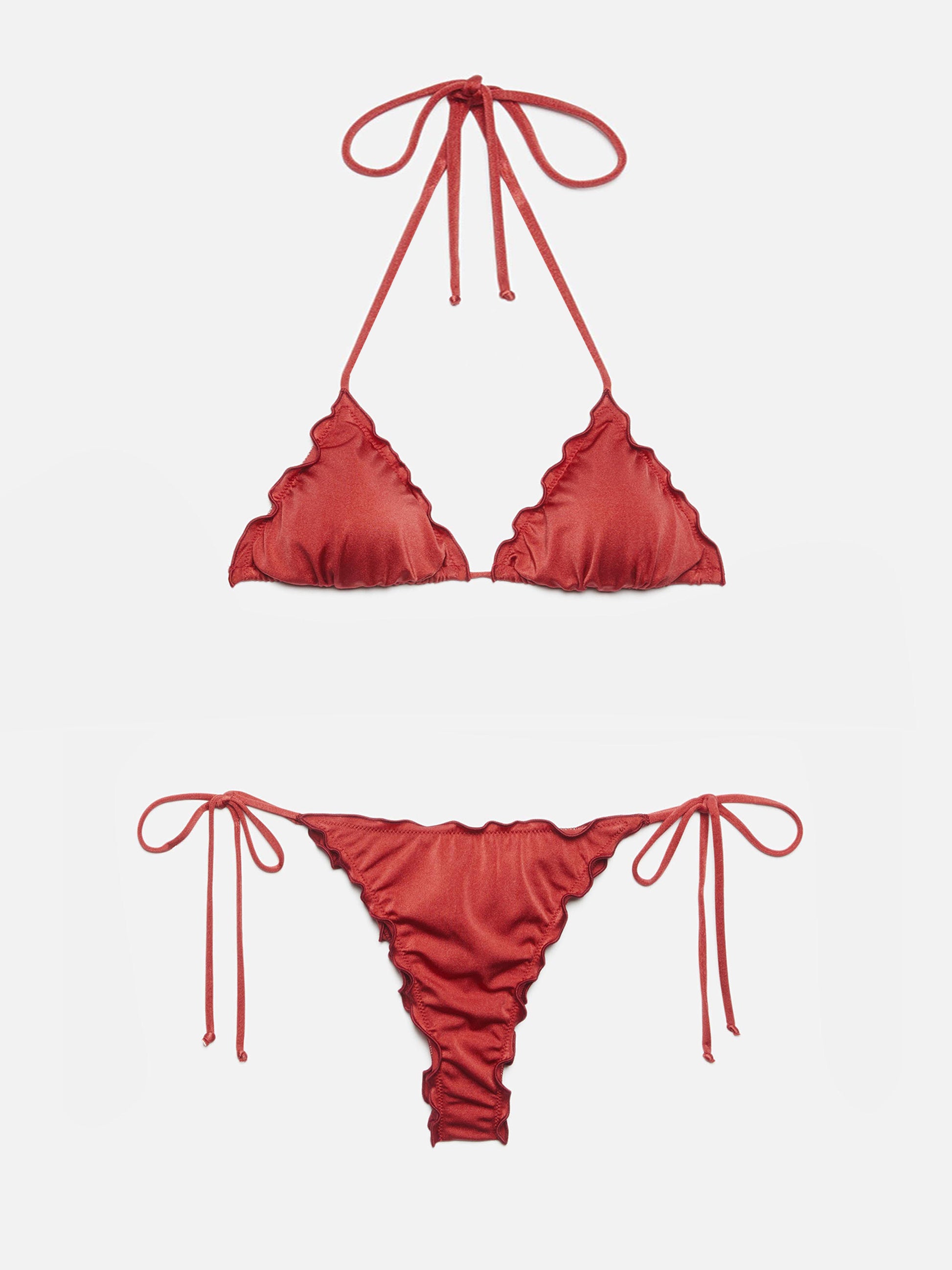 Bikini classico a triangolo in shimmer rosso mattone Sagittarius Miami