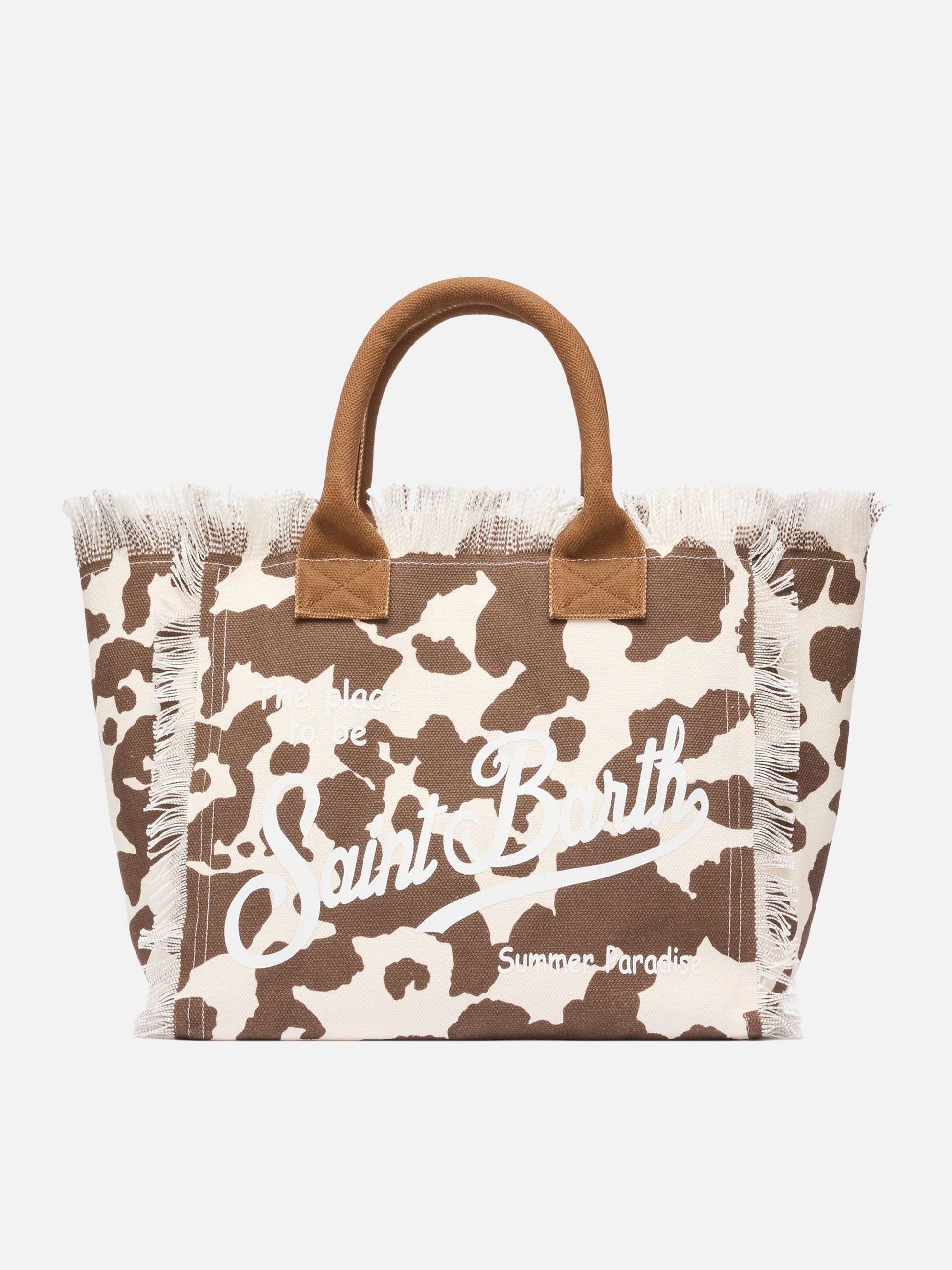 Borsa a spalla Vanity in canvas di cotone con stampa pelle di mucca