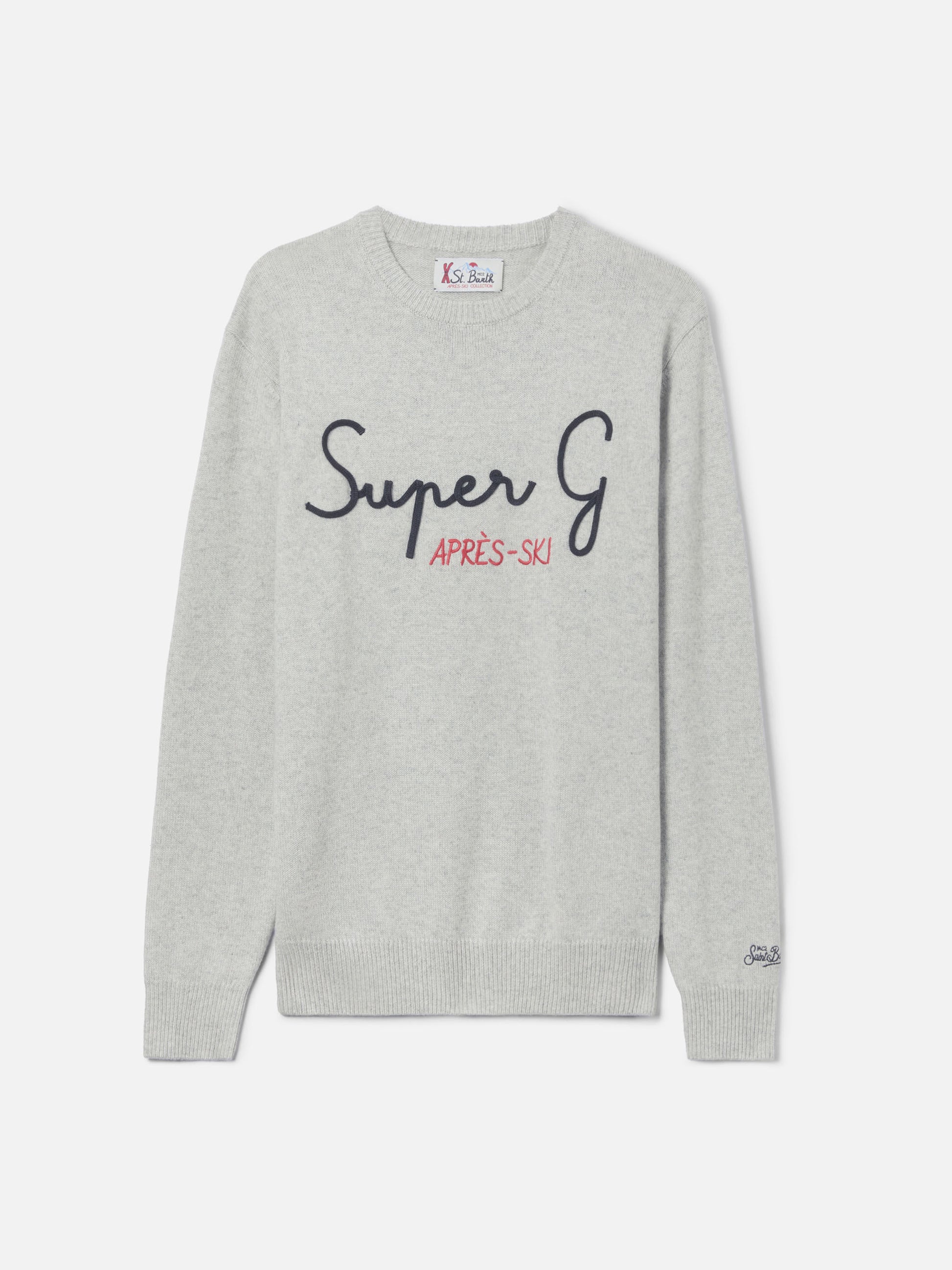Maglione grigio chiaro Heron con ricamo super G | SUPER G SPECIAL EDITION