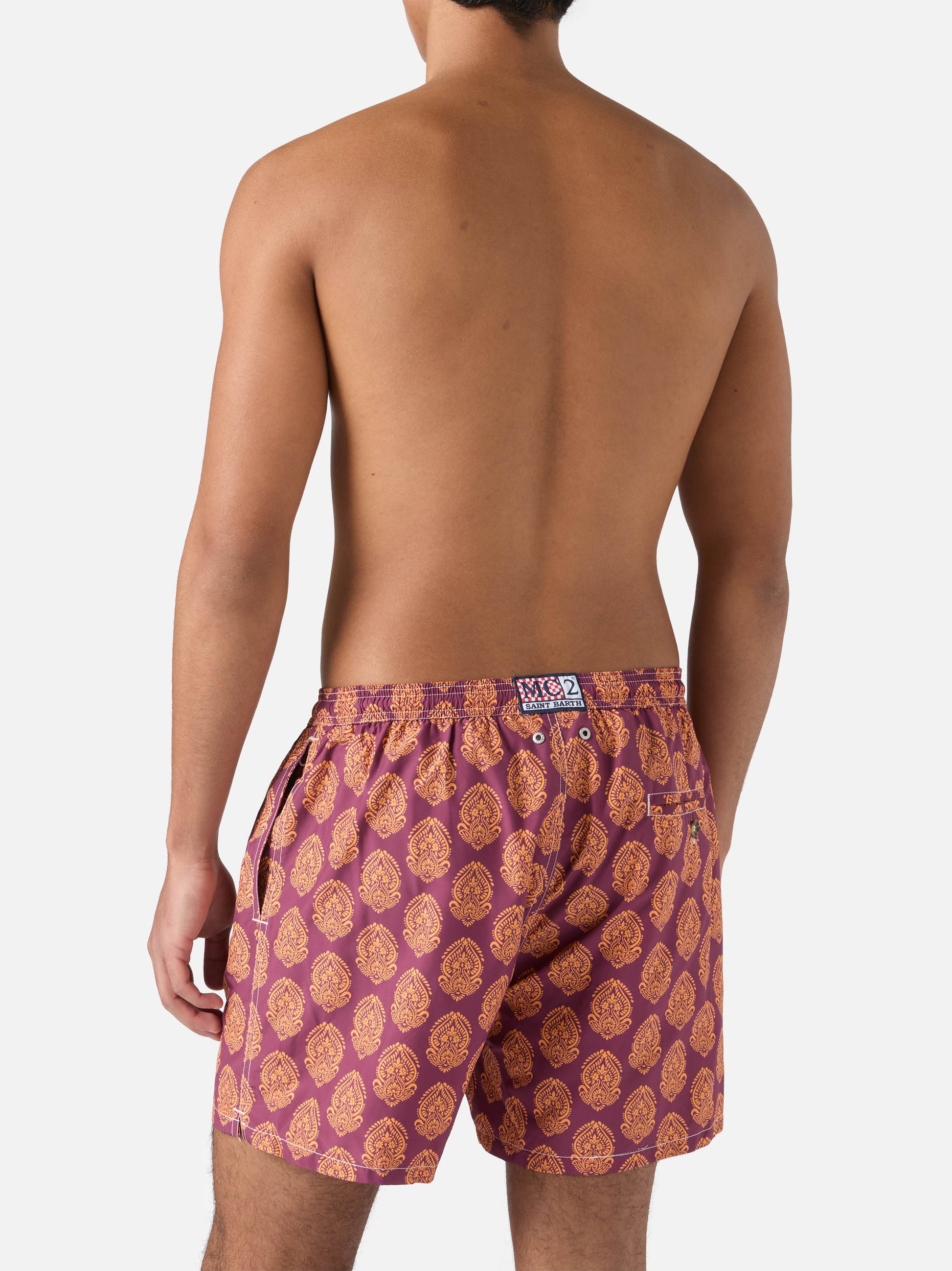 Il costume mare Lighting 70 a lunghezza media è realizzato in tessuto a rapida asciugatura, ispirato all'eleganza degli anni '70 con stampe maioliche e gipsy. La vita elasticizzata assicura comfort, mentre gli occhielli brandizzati favoriscono il drenaggio dell'acqua. Un cordino bianco con punta rossa accentua il fascino retrò. Dotato di tasche laterali, una tasca posteriore con chiusura a bottone e una tasca interna per monete, è pratico e funzionale. Realizzato in 100% poliestere riciclato, riflette il nostro impegno per la sostenibilità.