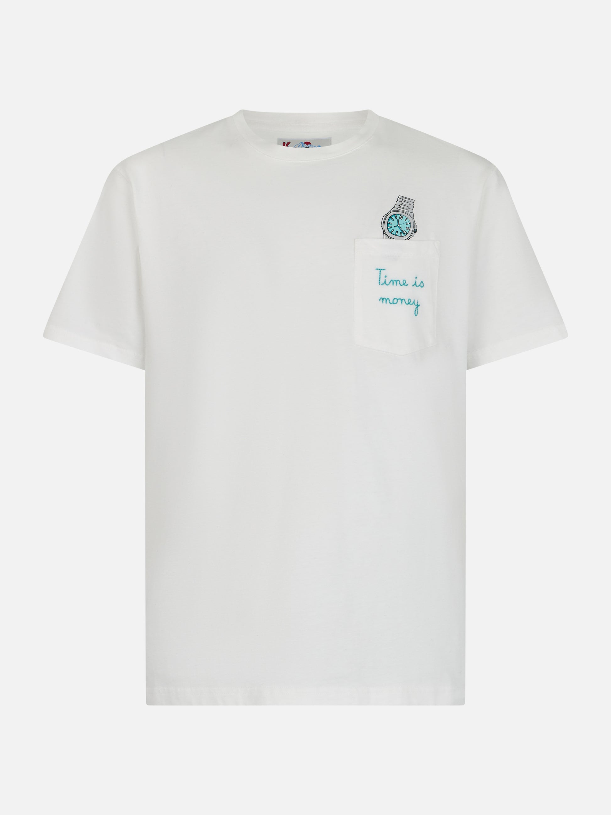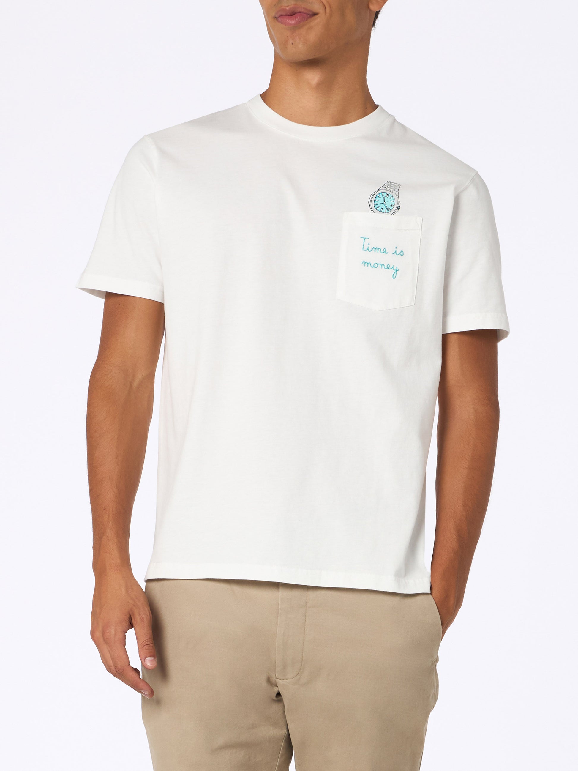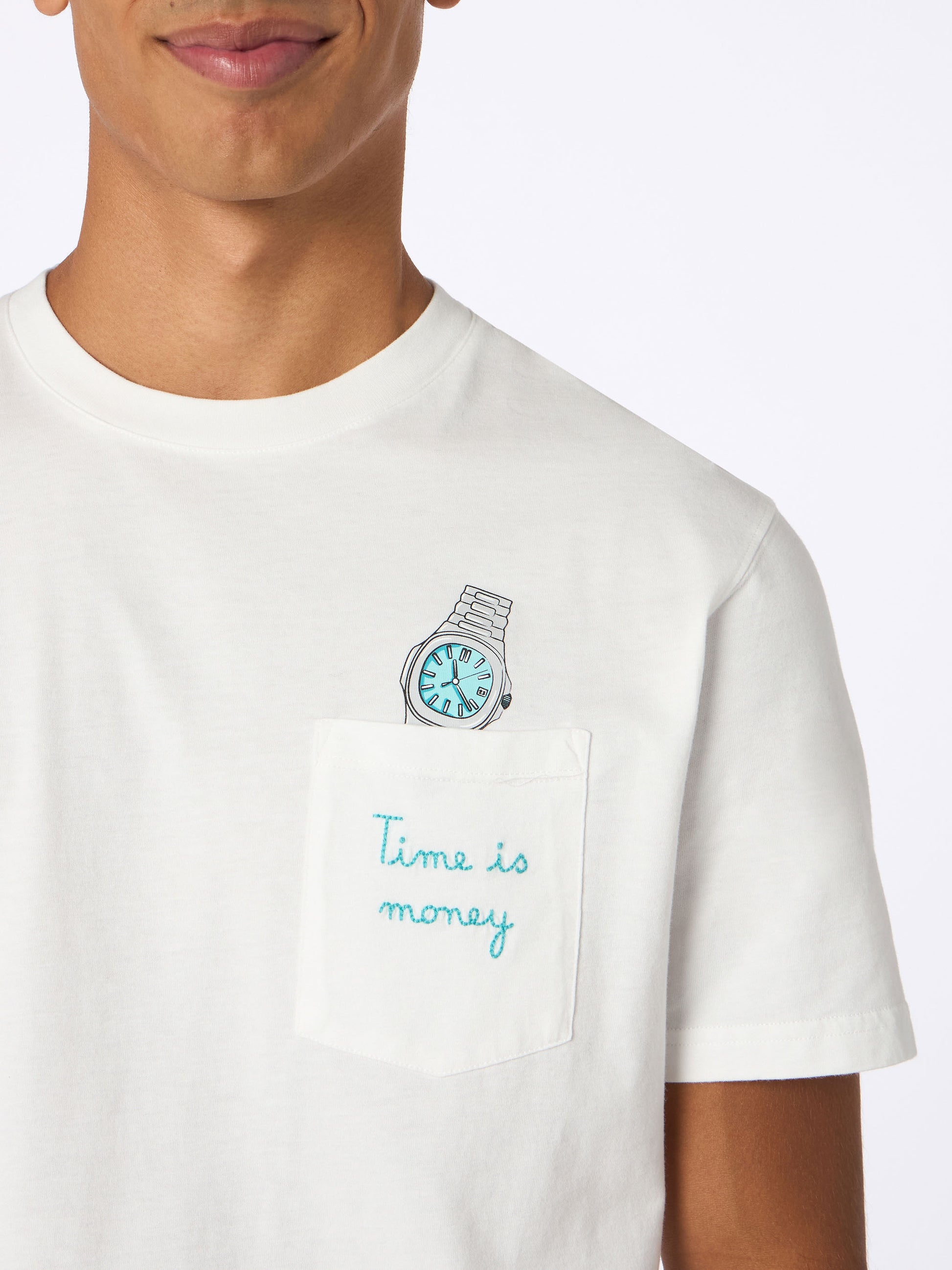 T-shirt da uomo in cotone bianco Connor con ricamo Time is money