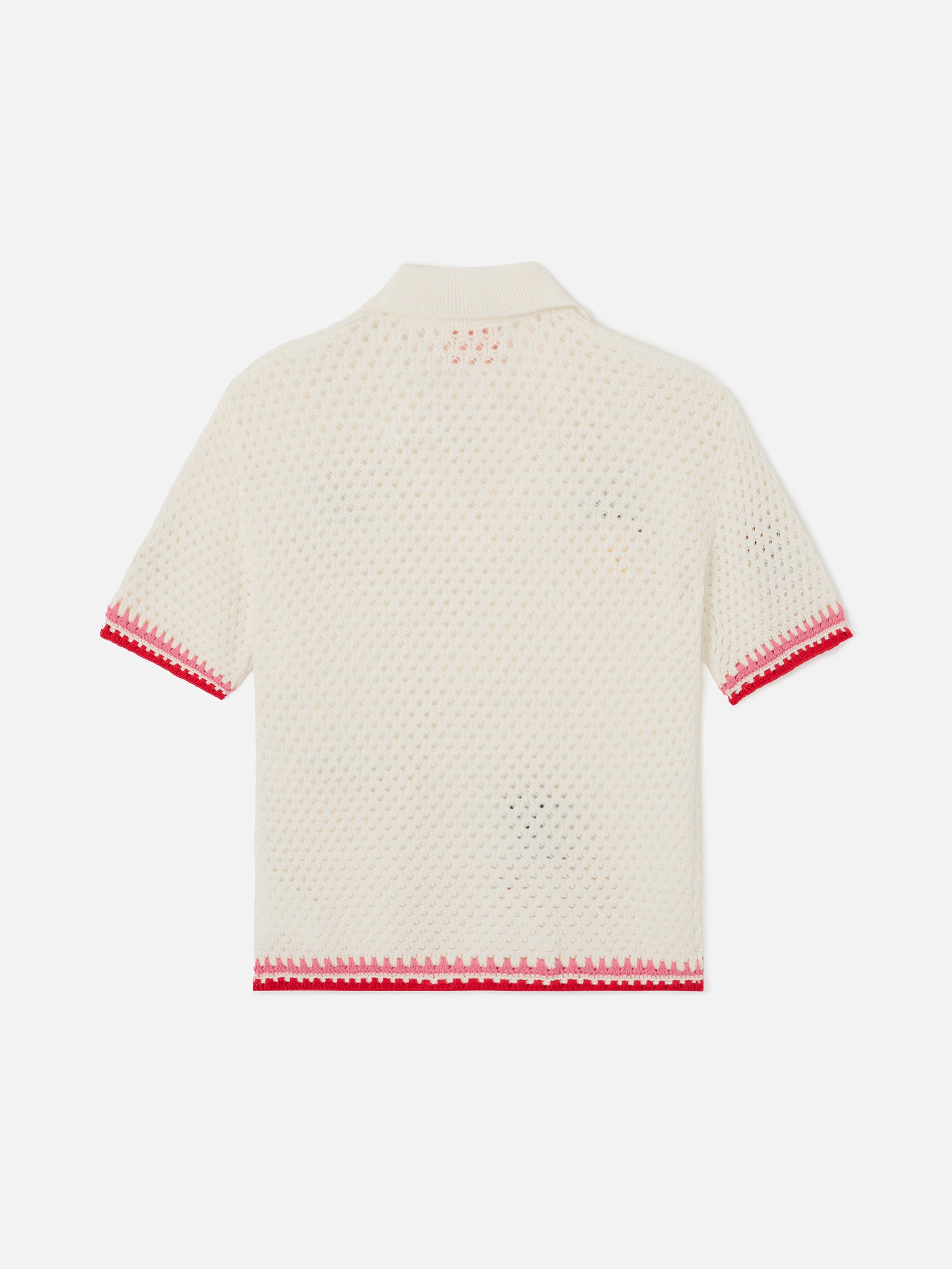 La Polo Pixie Jr è realizzata in misto cotone con punto traforato e spessore strutturato che dona corpo al capo. Questo modello da bambina è impreziosito da patch ricamate a contrasto con motivi frutta multicolor per un effetto vivace e tridimensionale. La lavorazione crochet e le finiture in costina completano il design con un tocco artigianale. Ideale con gli Yvette Jr Shorts coordinati.