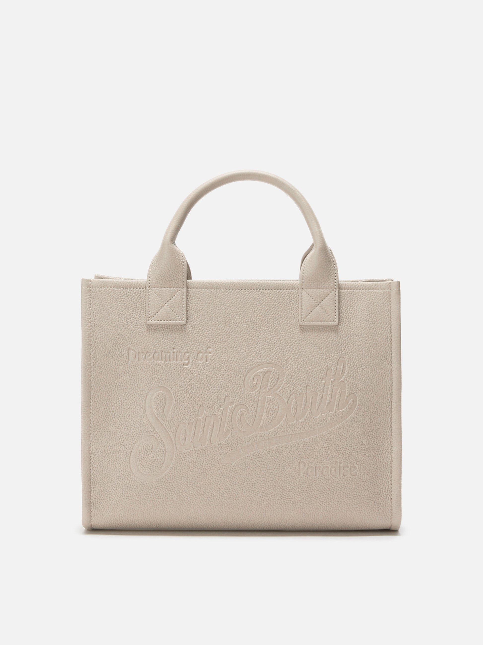 Borsa a spalla Vanity Bag Large in pelle martellata bianca