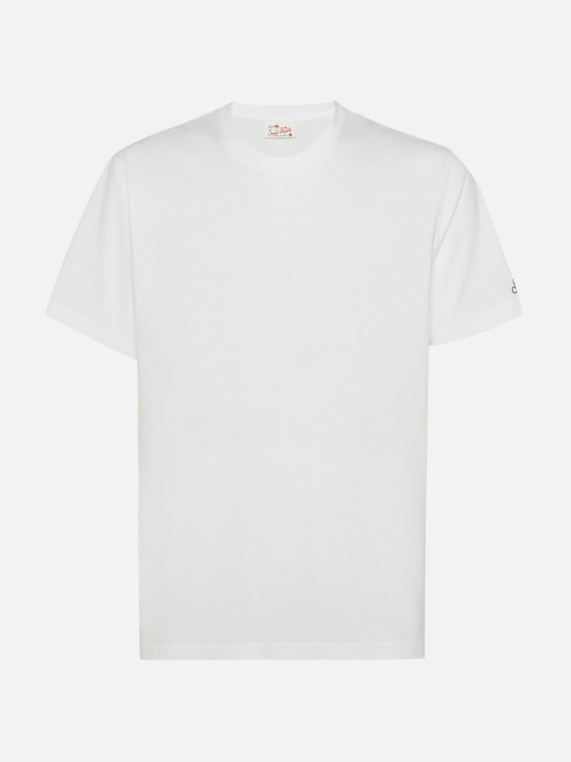 Tshirt Dover in jersey di cotone bianco con ricamo St. Barth