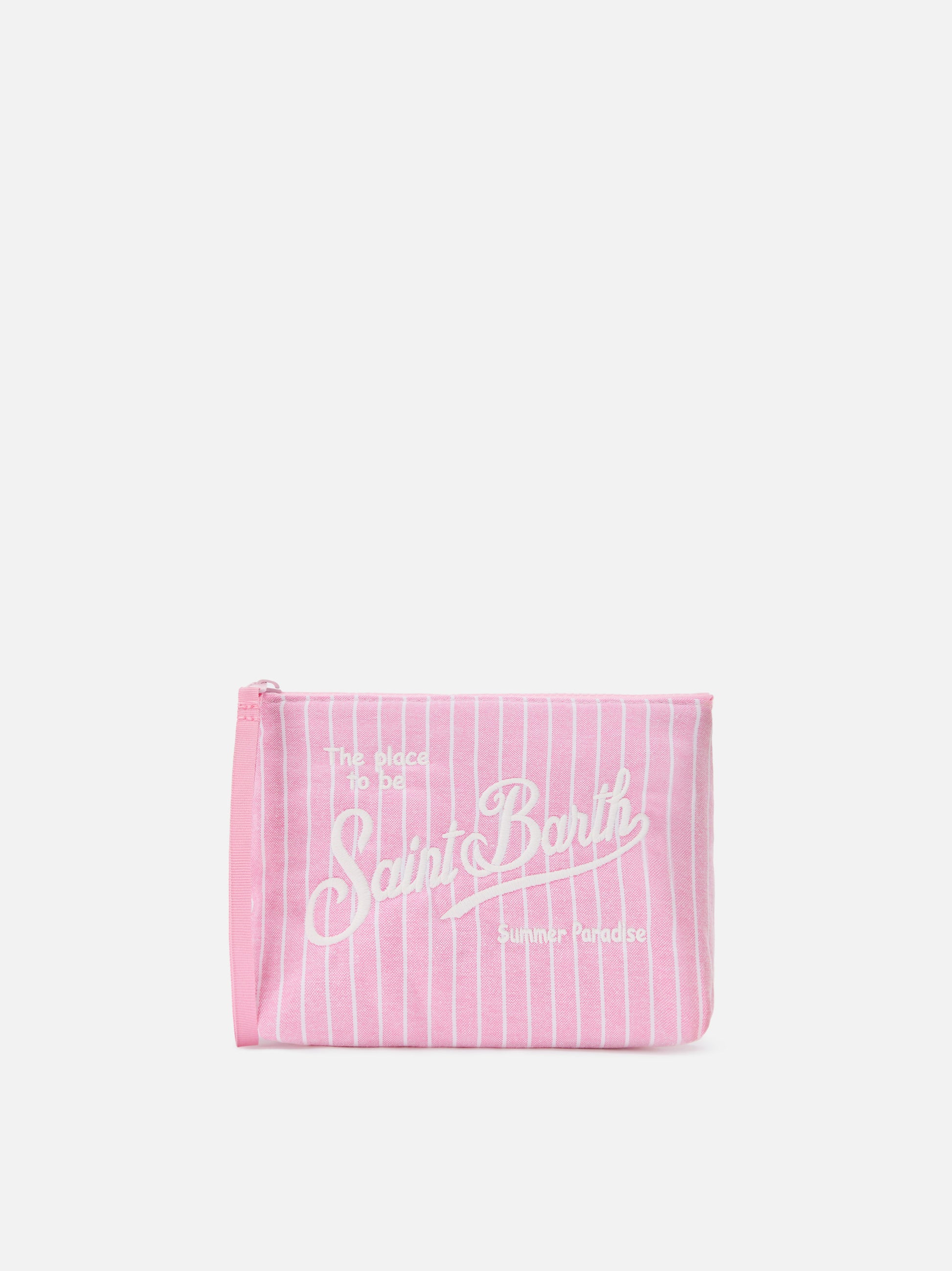 Aline pink striped cotton pouch
