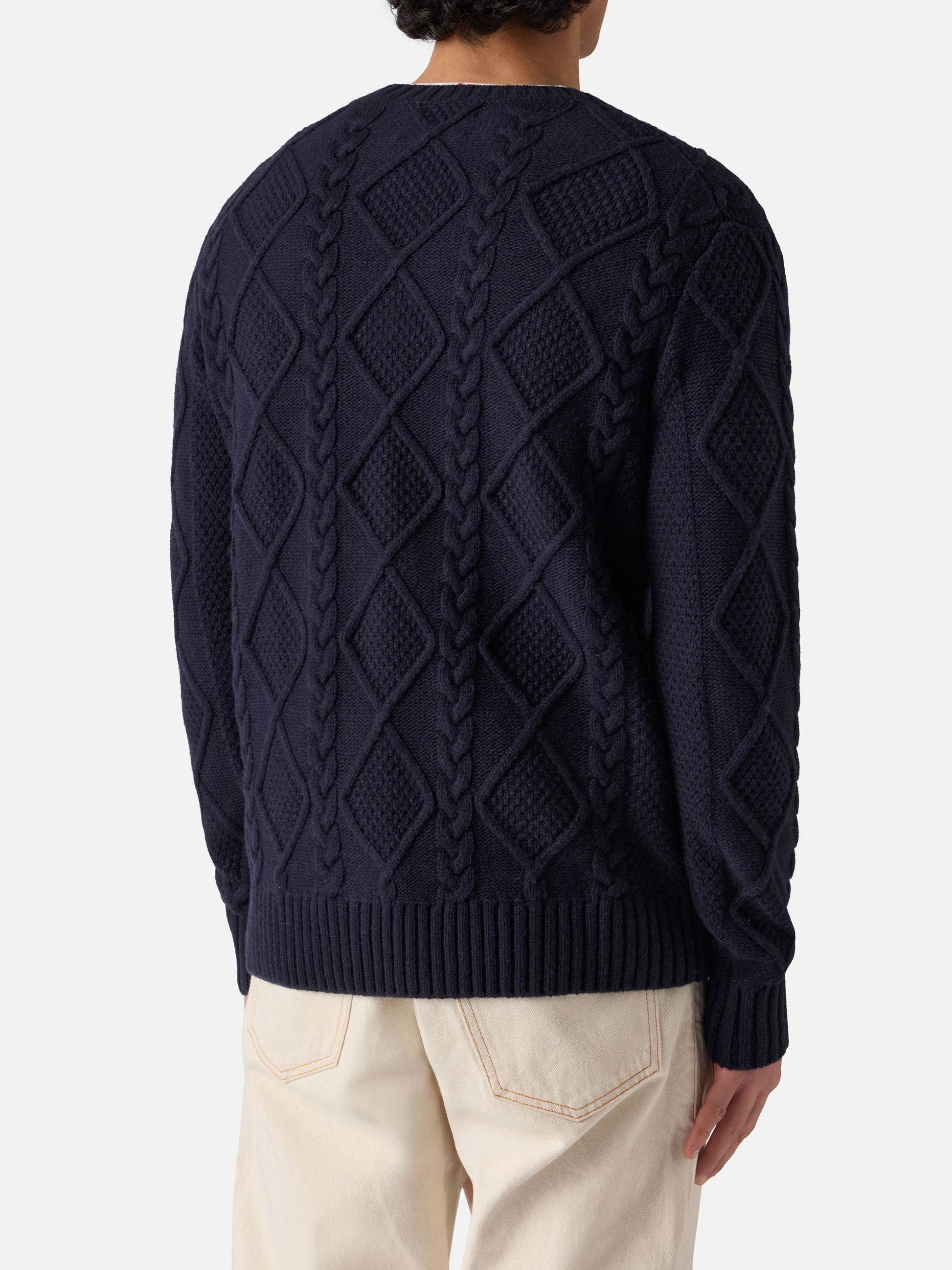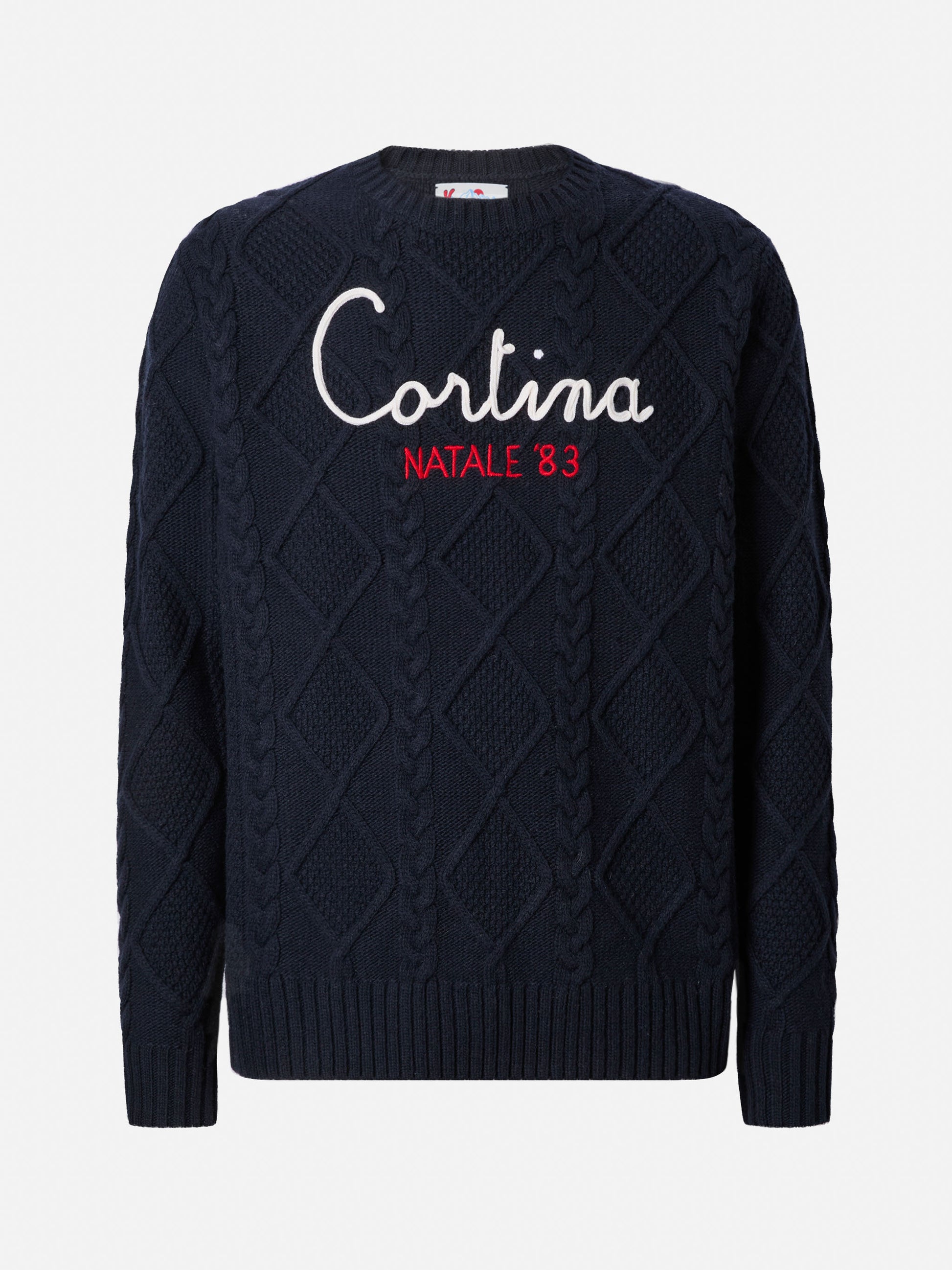 Blue crewneck sweater Bergen Tricot with Cortina Natale '83 embroidery