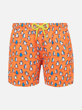Boy light fabric swim shorts with penguins print