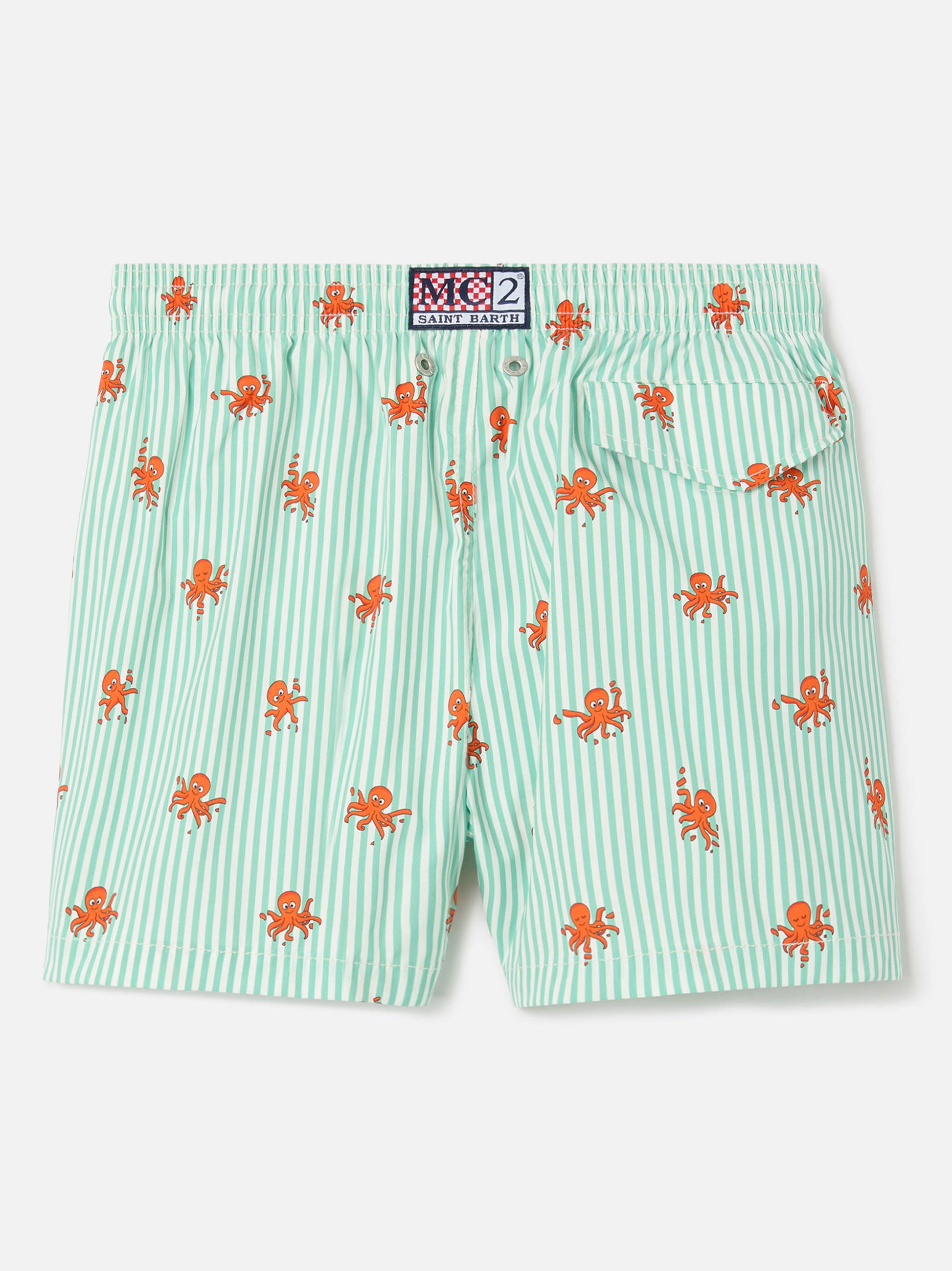 Jean Lighting Stretch swim shorts striped with all-over octopus print