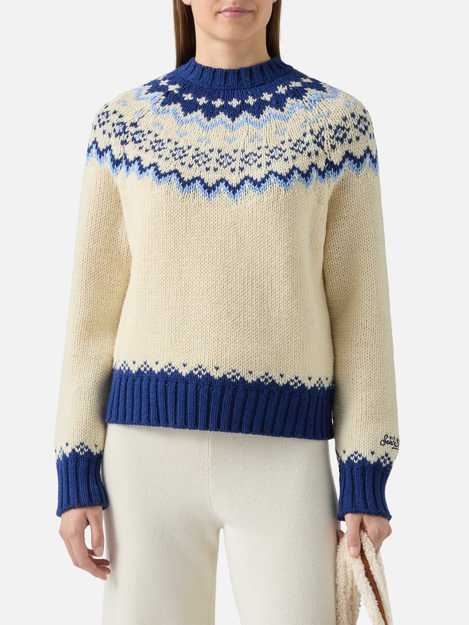 Kyla wool sweater with fair-isle jacquard and Apres Ski Lover embroidery